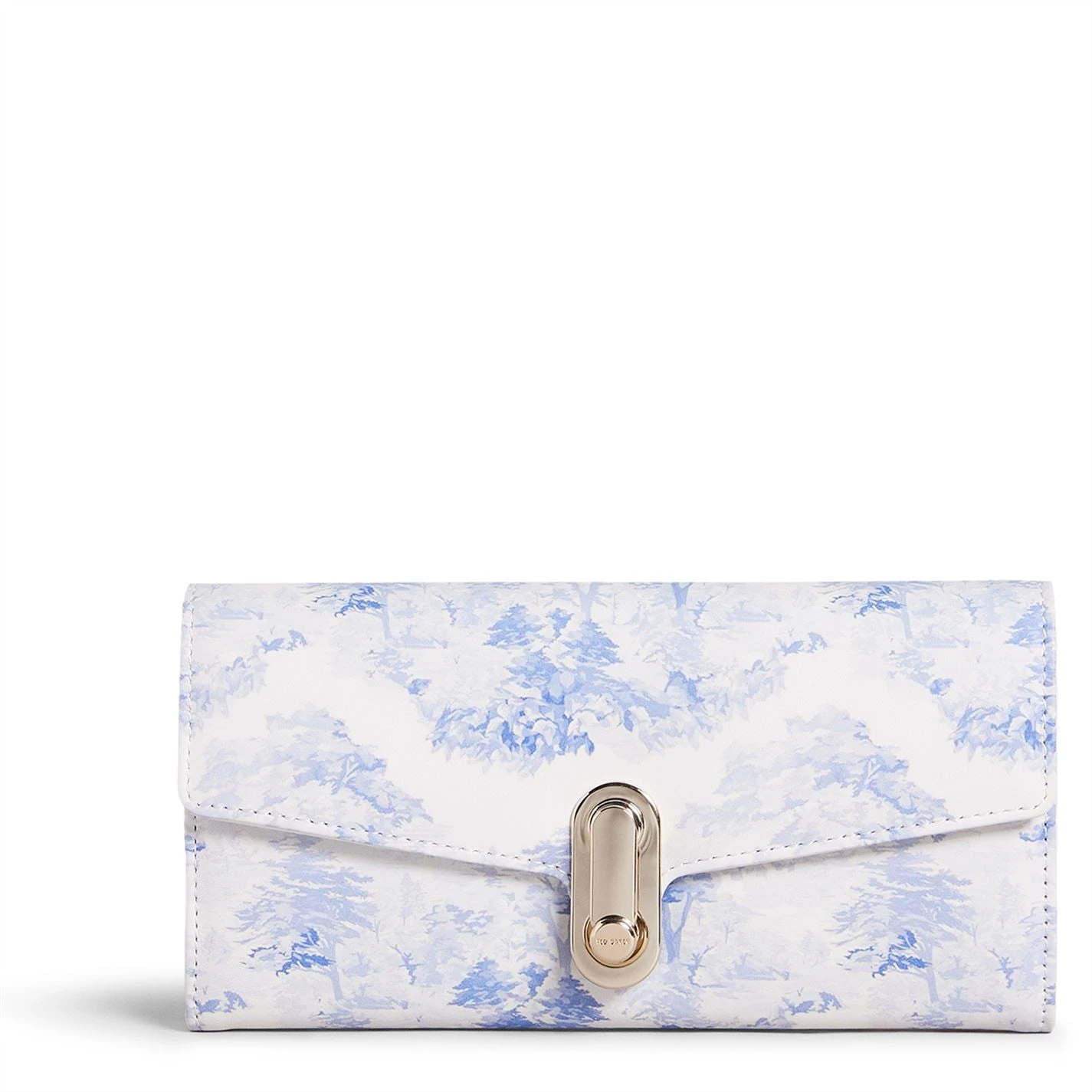 Carry your essentials in style with the Ayalami New Romantic Landscape Purse by Ted Baker, crafted from genuine leather with cotton lining. Featuring twist lock fastening, multiple internal slots to store cards, back zip pocket, internal zip pocket for coins, finished with an all-over tile print for a elegant style.