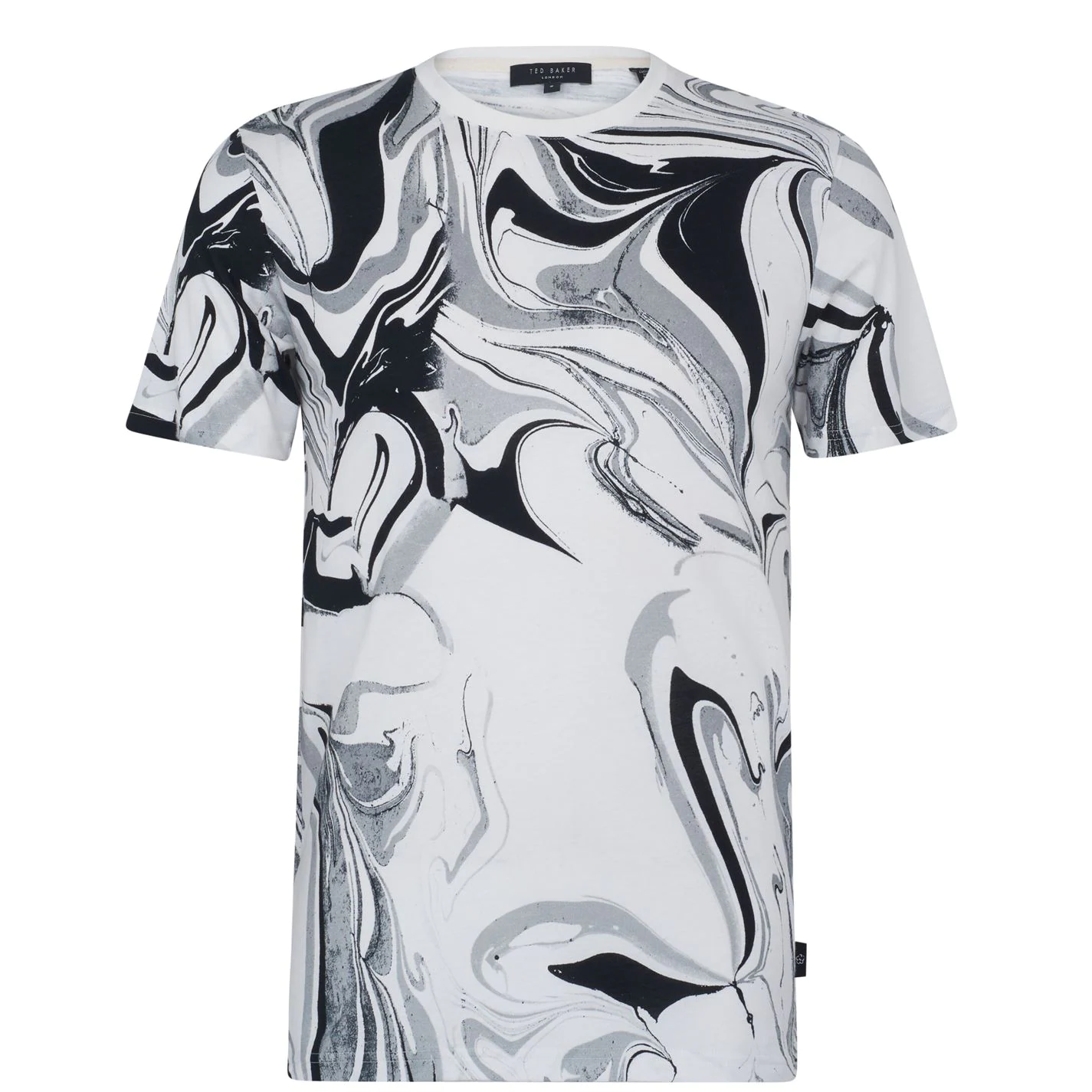 Refresh your casual classics with this tee from Ted Baker. Cut with a ribbed crew neck and short sleeves, this tee is made from pure cotton for all day comfort. With split seams to the hem, this tee is finished in a monochrome marble print.