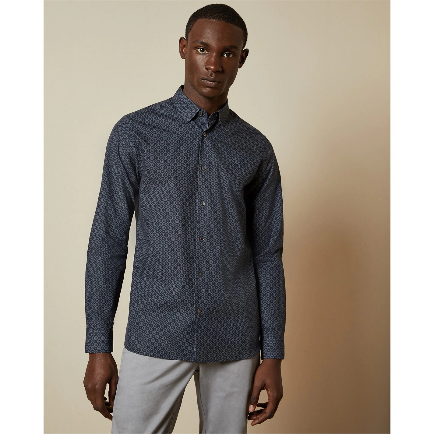 Update your collection with this Ted Baker Brella Long Sleeve Shirt. Crafted with a folded collar and full button fastening for a secure fit, it features long sleeves with button cuffs for a classic look. This shirt is an all over print designed with a signature logo and is complete with Ted Baker branding.