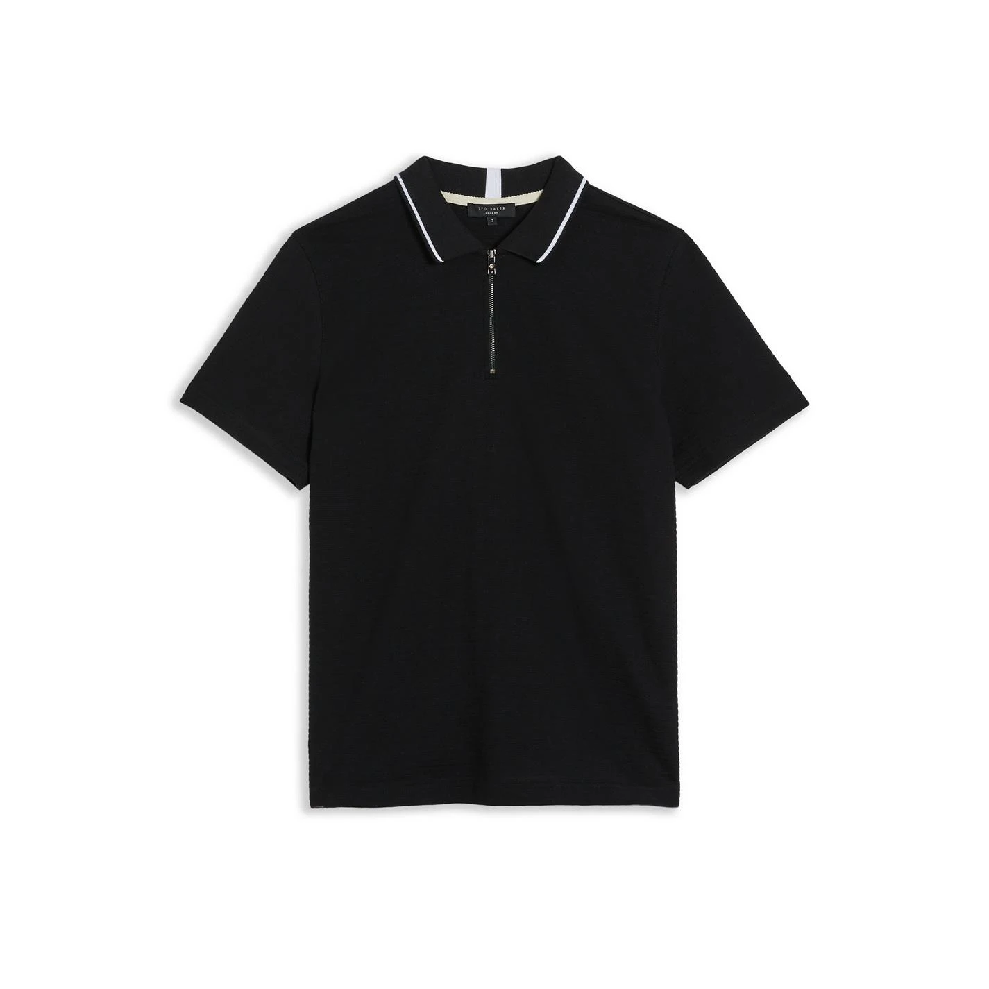 Add a contemporary style to your formal collection with the Ted Baker Buer Zip Up Polo Shirt. Crafted from a textured cotton with a polo collar and short sleeves for a classic cut, this shirt comes styling a zip up placket. Complete in a solid block colouring for versatile styling, this piece is perfect for days at the office.