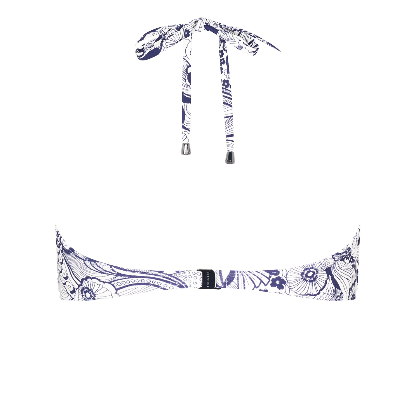 Update your summer collection with this stylish Candee Tie Bikini Top by Ted Baker. Crafted in in a comfortable design with removable padding, this bikini top features shoulder tie fastening with a buckle closure to the rear for a customizable fit. Decorated with a floral patterning throughout with a tie detailing to the front, this bikini top is finished with the Ted Baker branding for a premium look.