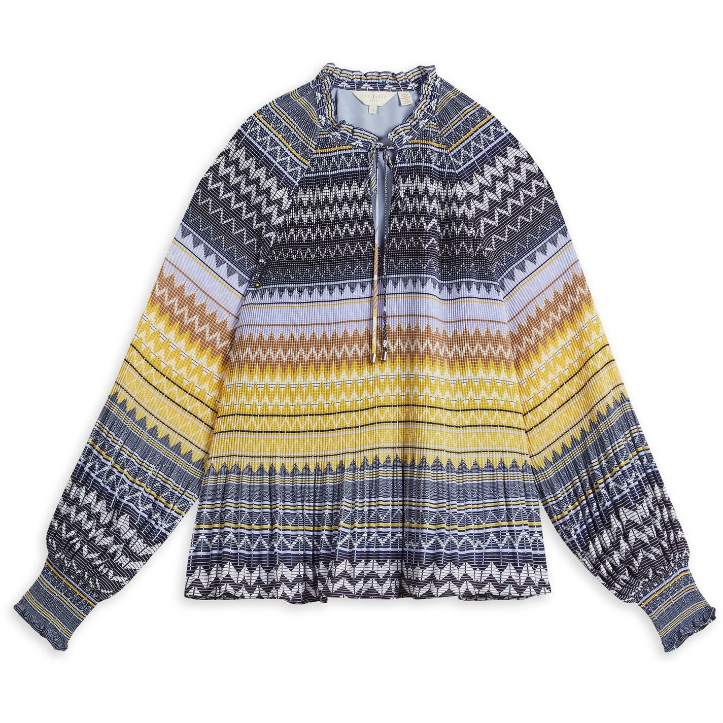 Elevate your collection with this Ted Baker Deliie Blouse. Crafted with long sleeves and a tie neckline for a classic look, it features elasticated hems for a comfortable fit. This blouse is an all over print design with a signature logo and is complete with Ted Baker branding.