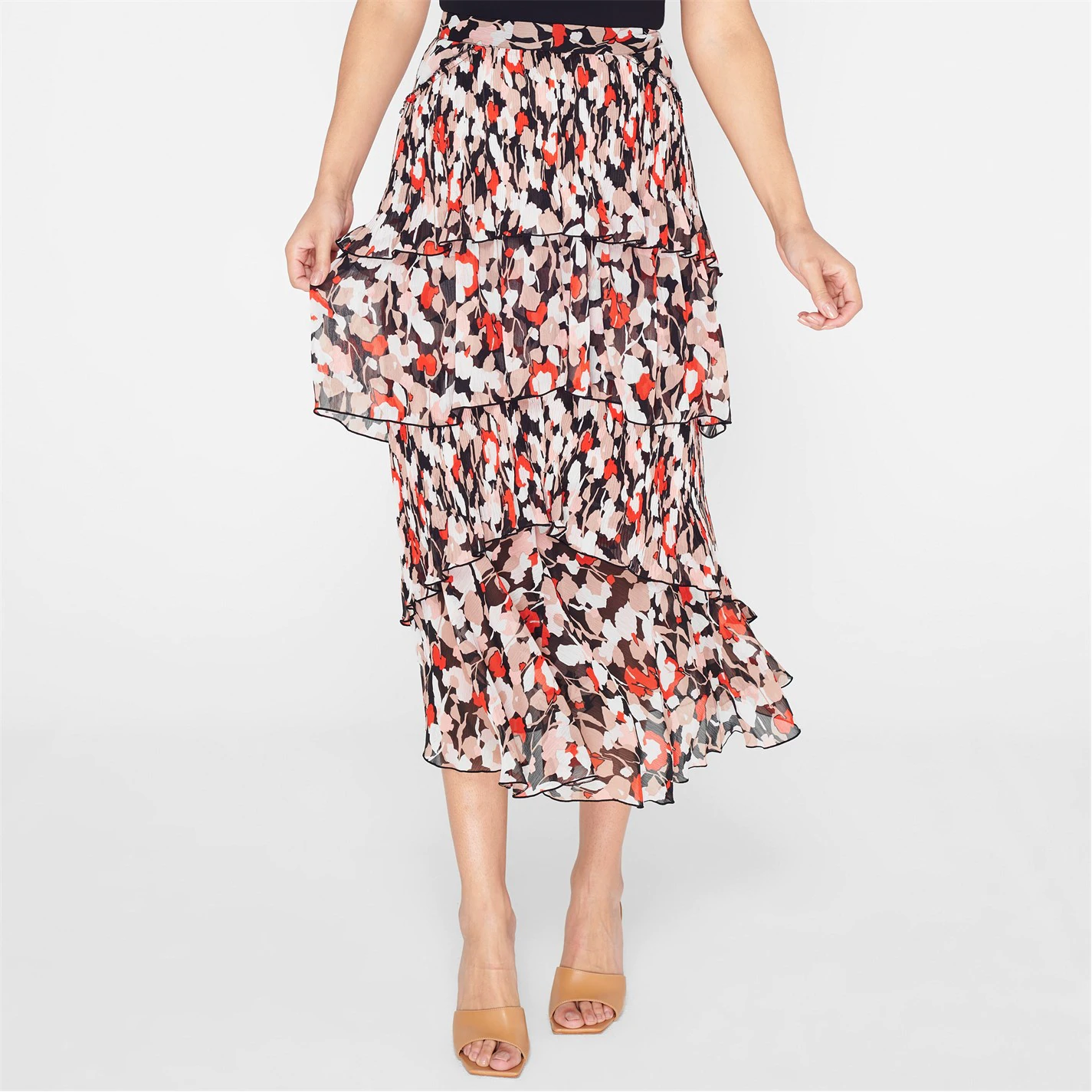 Designed with a feminine allure, the Dornie Midi Skirt from Ted Baker has been crafted from a sheer and lightweight fabrication styling a multi-coloured abstract print. Designed with a tiered silhouette in a midi length fit, this skirt has a piped seaming for a premium touch, complete with an upper zipped fastening to the waistband for a secure fit. Pair this with a bodysuit and cropped jacket for a day-to-evening look.