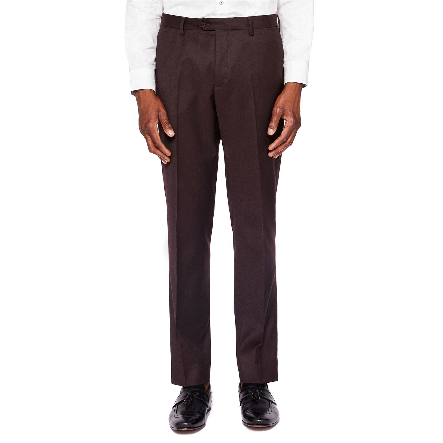 Enhance your collection with these Ted Baker Flannel Trousers. Constructed with button closure to the waist and a zip up fly for a secure fit, they feature belt loops and four pockets for a classic look. These trousers are designed with a signature logo and is complete with Ted Baker branding.