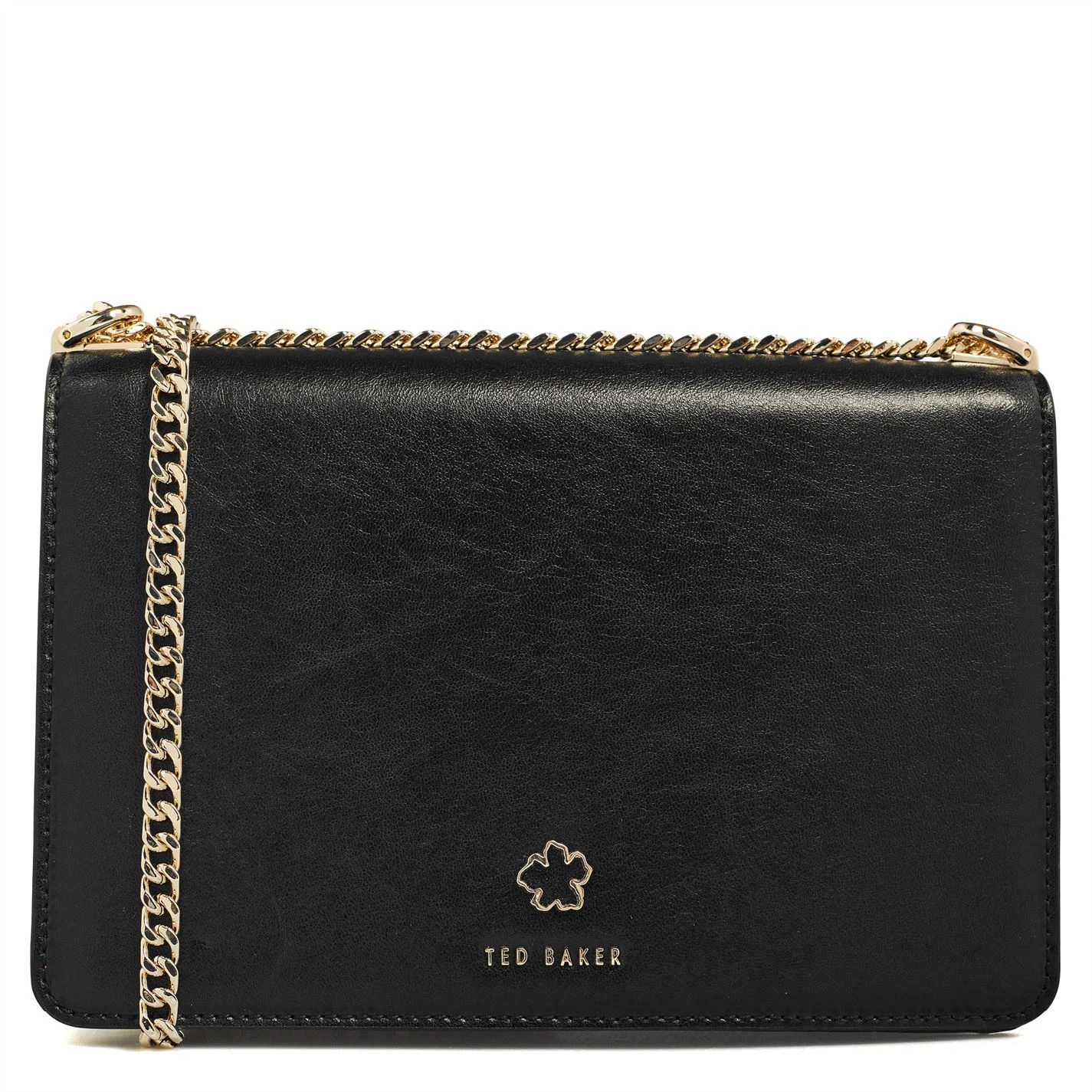 The Ted Baker Flower Jorjey Xbody Bag is a great addition to your evening accessories, crafted with a magnetic top flap with an open main compartment and internal pockets that provides ample space for all your essentials. An adjustable chain strap allows for comfortable transportation in the hand or on the shoulder, while a smooth grain leather with gold tone flower detail give a simple statement look, completed with the Ted Baker branding to the front.