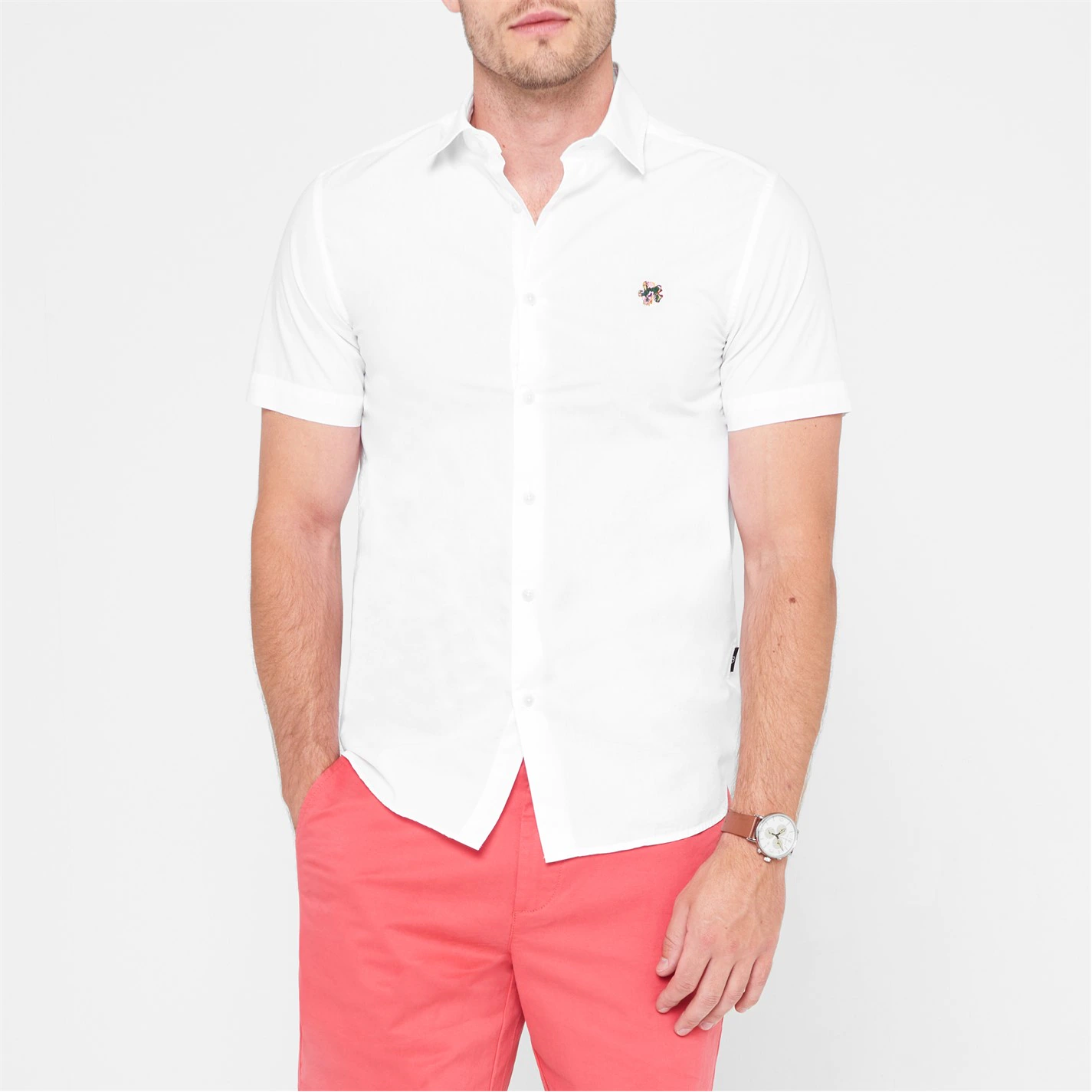 Update your collection with this Ted Baker Fonsho Short Sleeve Shirt. Crafted with a folded collar and full button fastening for a secure fit, it features long sleeves with button cuffs for a classic look. This shirt is a solid colouring throughout designed with an embroidered logo to the chest and is complete with Ted Baker branding.