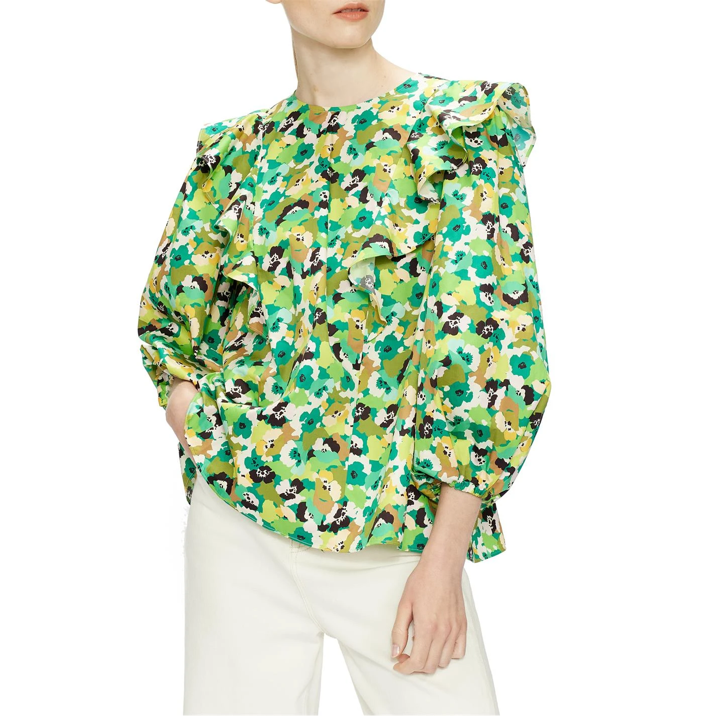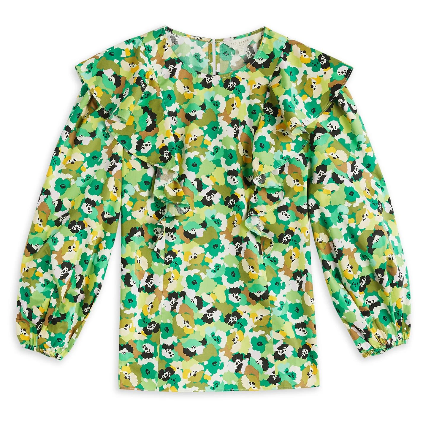 Add a colourful print to your wardrobe with the Ted Baker Gigie Print Top. Crafted from a soft cotton, this top features balloon sleeves with elasticated cuffs and frilled detailing. The 60’s inspired floral print offers a stylish aesthetic with the button fastening and keyhole cut out at the back completing the design.
