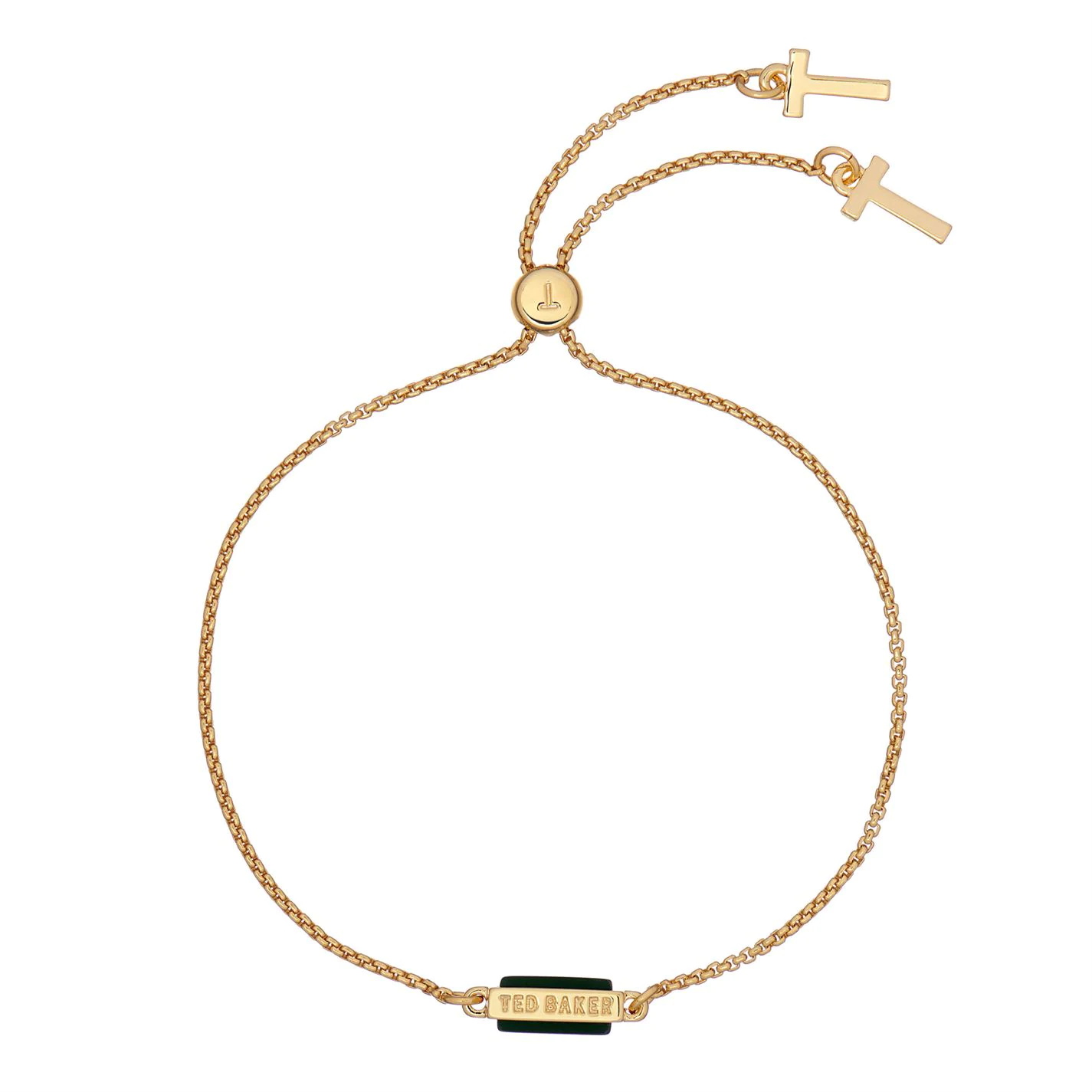 You can wear Ted Baker’s GLORII bracelet solo or stacked with your favourite jewellery because it’s so versatile and classic. It features a shimmering stone inside a branded bar. The sliding adjuster moves to fit your wrist.