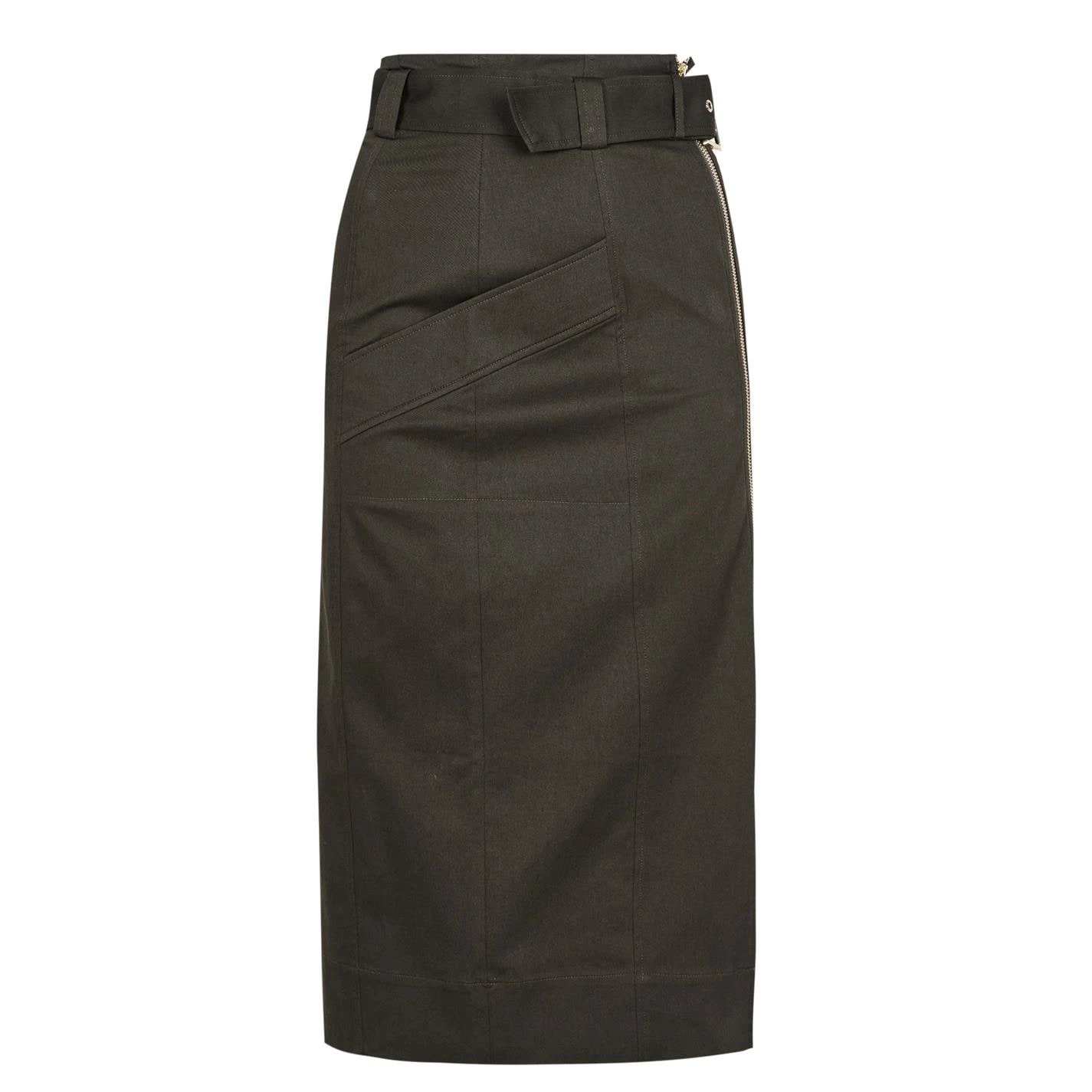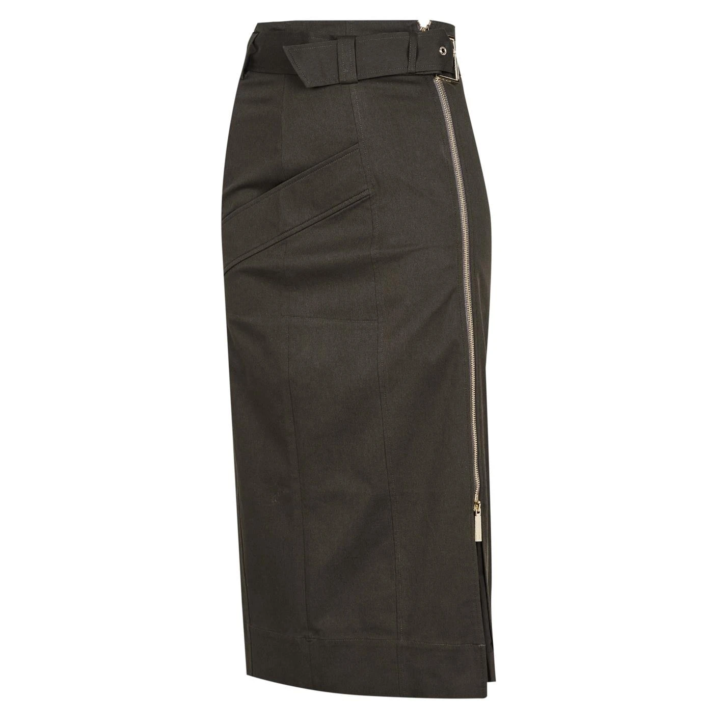 Elevate your weekend fit with the Ted Baker Janiis Midi Skirt. A structured cotton blend construction with a classy midi length and central zip fastening. The gold toned buckle fastening at the waist adds a trendy, high quality element with the side pockets completing the stylish piece.
