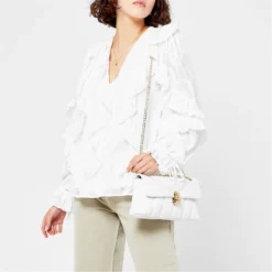 Take to the beach in style with the Ted Baker Junyper Cover Up. A lightweight floaty construction with long balloon sleeves and a bardot neckline. The frilled tier offers a stylish touch with the colourful all-over print completing the design.