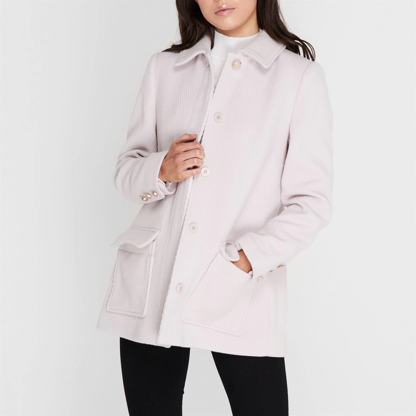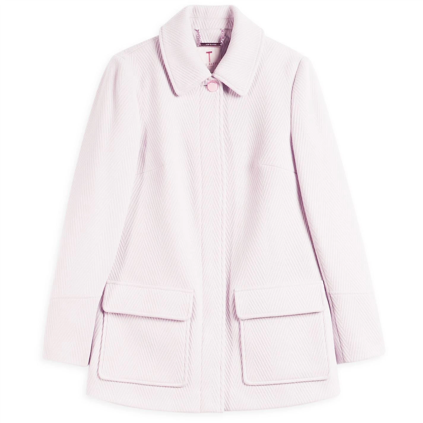 Refresh your collection with this Ted Baker Kamile Coat. Constructed with a folded collar and central button fastening for a secure fit, it features long sleeves and two hand pockets for a classic look. This coat is designed with a signature logo and is complete with Ted Baker branding.