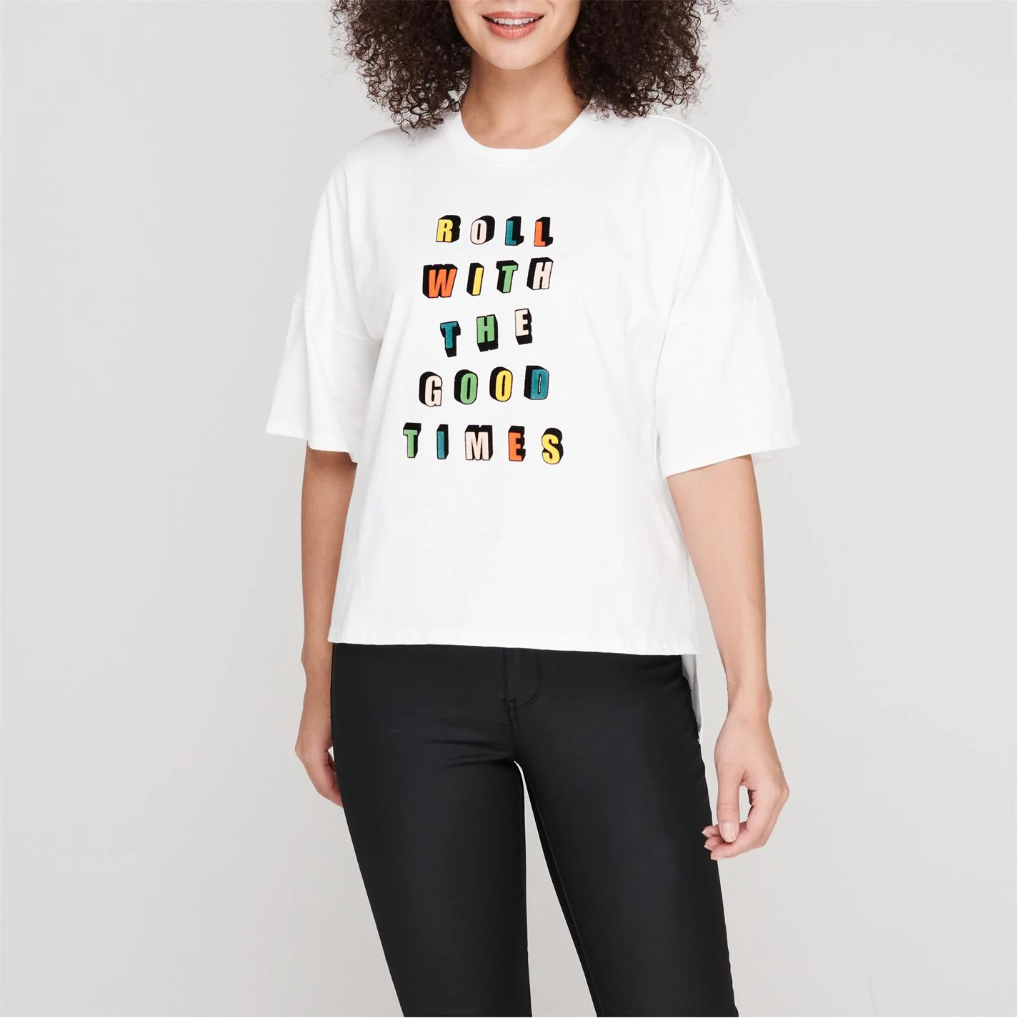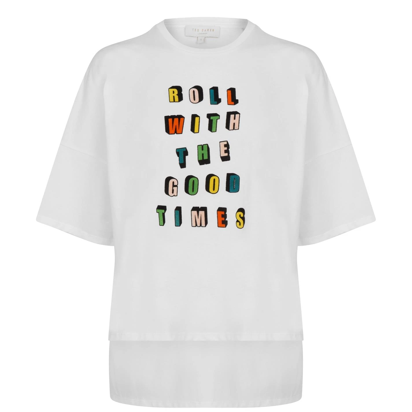 Update your collection with this t-shirt from Ted Baker. Cut with a crew neck and short sleeves, this tee is made from pure cotton for a comfortable wear. In a loose fit with a longer rear hem, this tee is finished with a slogan adorning the front.