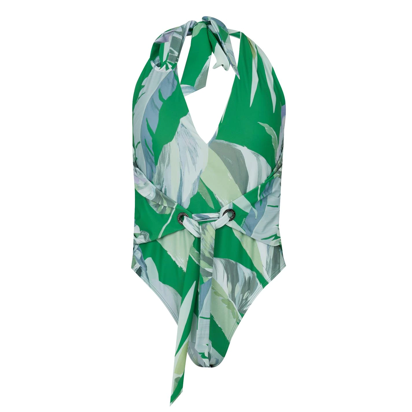 Refresh your swimwear collection with the Ted Baker Livosa Swimsuit. The design features adjustable straps to go around the neck to help achieve the perfect fit with the tie fastening at the waist offering a flattering shape. With the plunge neckline providing a stylish aesthetic, the all-over print and Ted Baker branding completes the look.