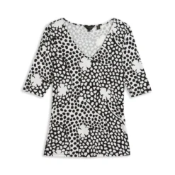 Enhance your everyday wardrobe with the Ted Baker Lucyz T-shirt. A lightweight construction with a flattering v neckline and short sleeves to make for the perfect layering piece. With the monochromatic element making the piece extremely versatile, the all-over print completes the stylish t-shirt.