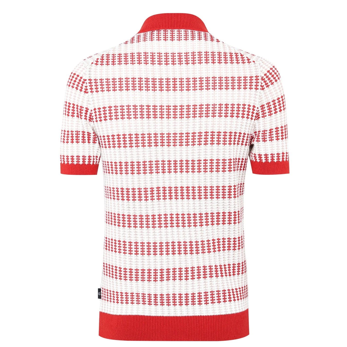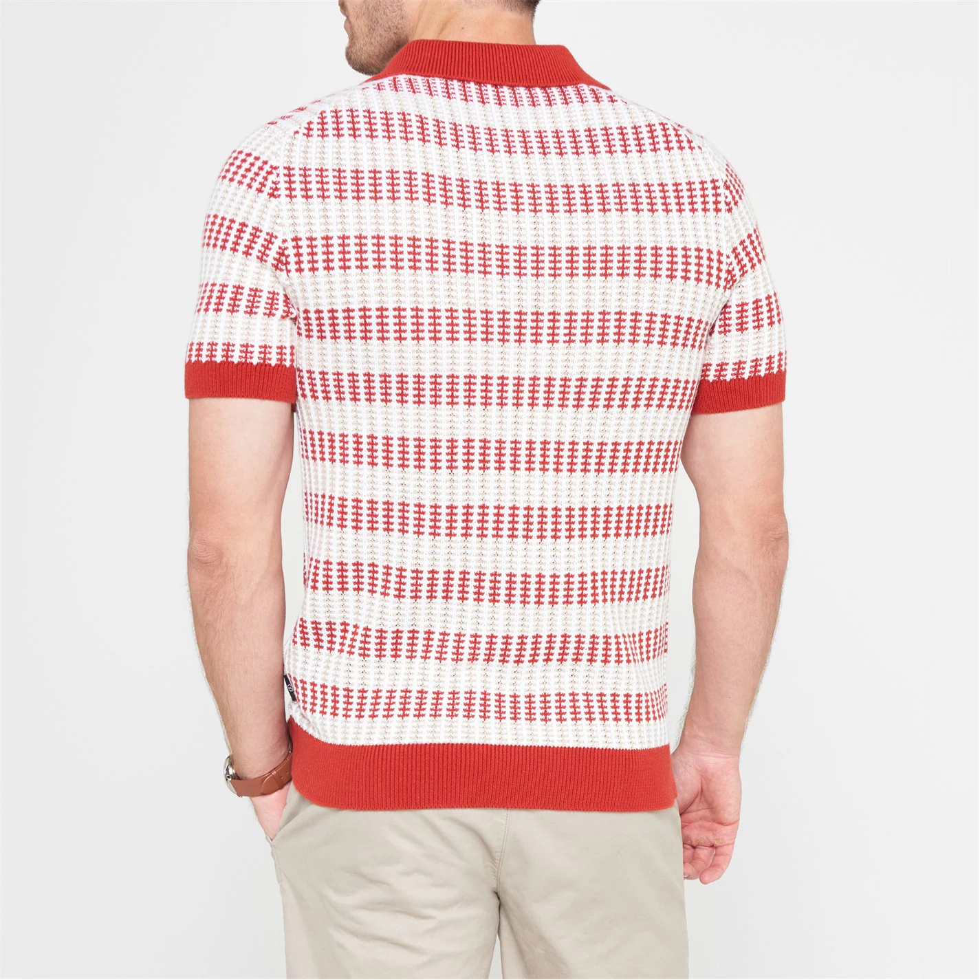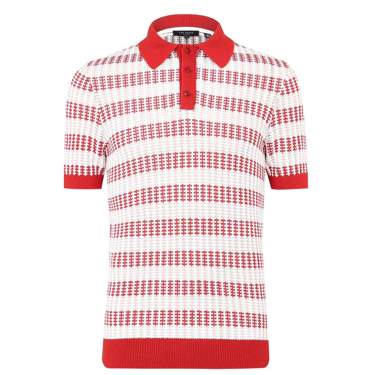 Update your casual attire with the Maynard Polo by Ted Baker, crafted in a chunky knit from a cotton and acrylic blend for everyday comfort. The polo features a ribbed collar with three button fastening, short sleeves with ribbed cuffs and hem. The look is completed by contrast stripe detailing knitted all-over and the iconic Ted Baker logo embroidered to the hem for a high quality appeal.