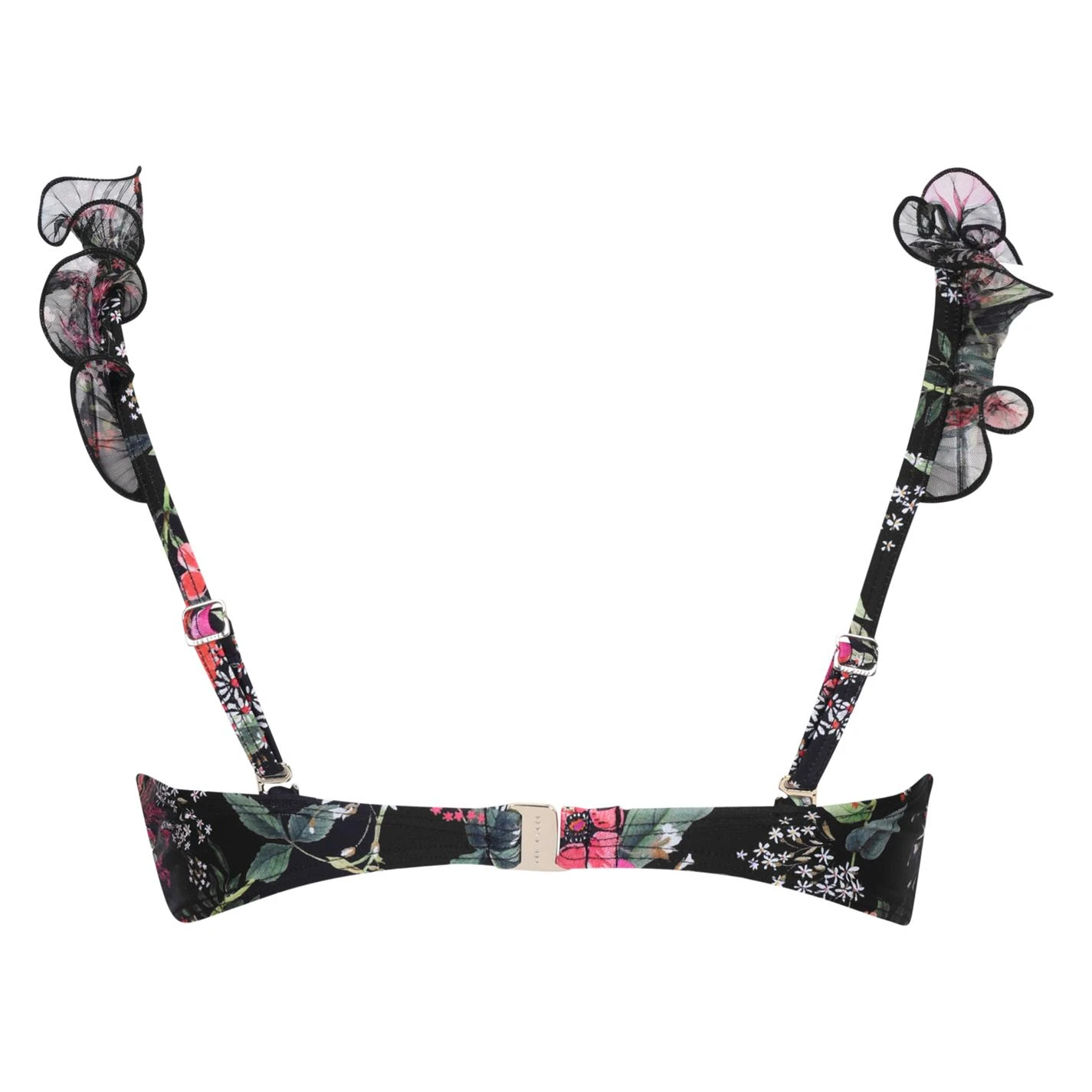 Perfect for your holiday the Ted Baker Metro Bikini Top which features the brands eye-catching floral print, frill detailing, tie front and branded clasp to the back for extra stylish flair.