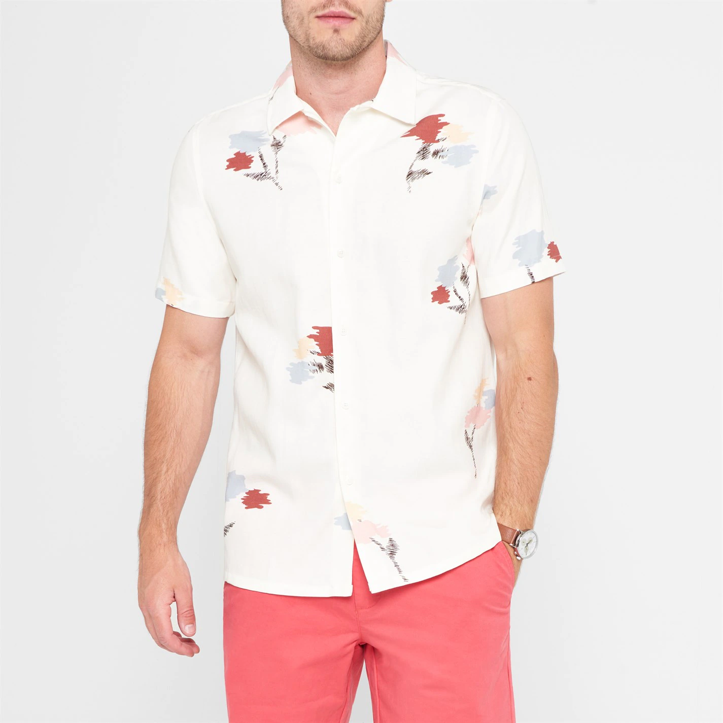 Refresh your casual attire with this premium option for the summer season, the Neele Shirt by Ted Baker is crafted from lyocell, linen and cotton-blend for all-day comfort and breathable fit. Cut in a loose design the shirt features a point collar, button fastening to the front, split seams to the hem and short sleeves. The look is completed by the iconic Ted Baker logo tag to the side and a all-over abstract pattern.