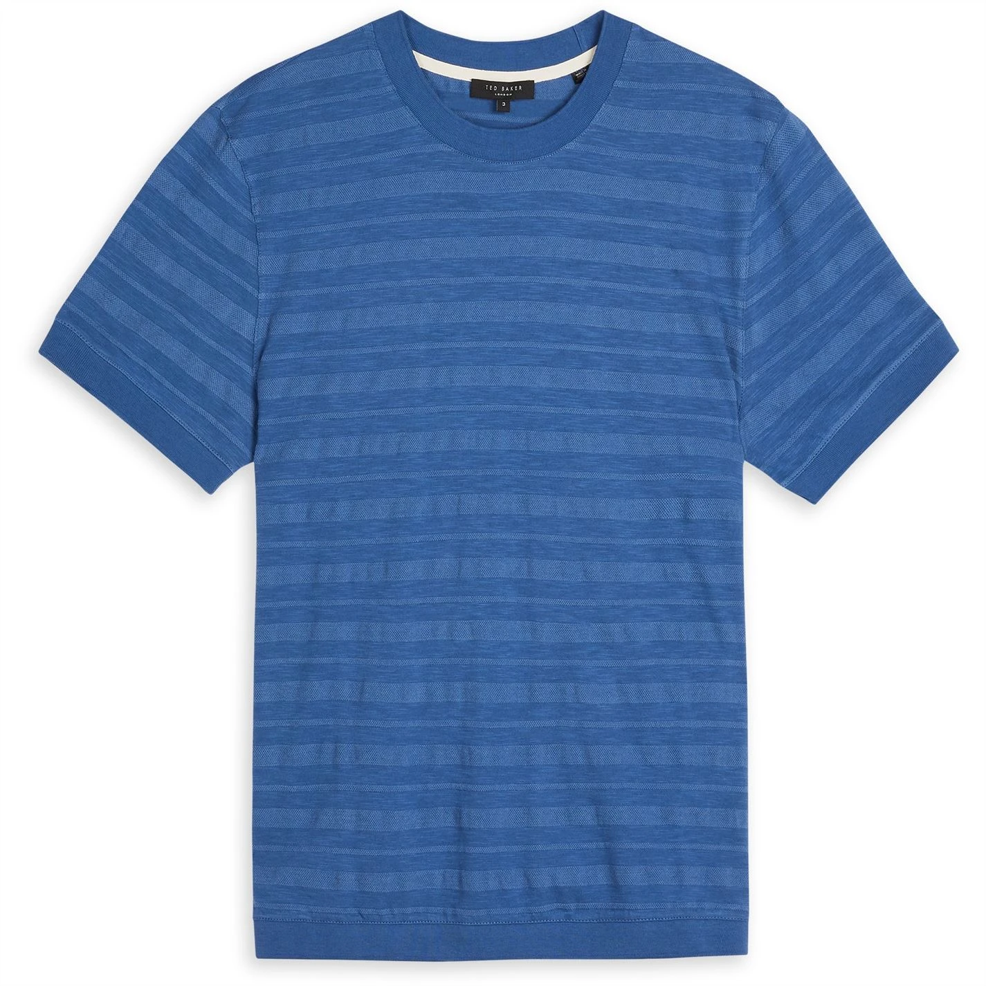 Elevate your casual collection with this Ted Baker Nekache T Shirt. Crafted with a ribbed crew neckline and short sleeves for a classic look, it features elasticated hems for an all-day comfortable fit. This t shirt is a stripe design with a signature logo and is complete with Ted Baker branding for a high quality appeal.