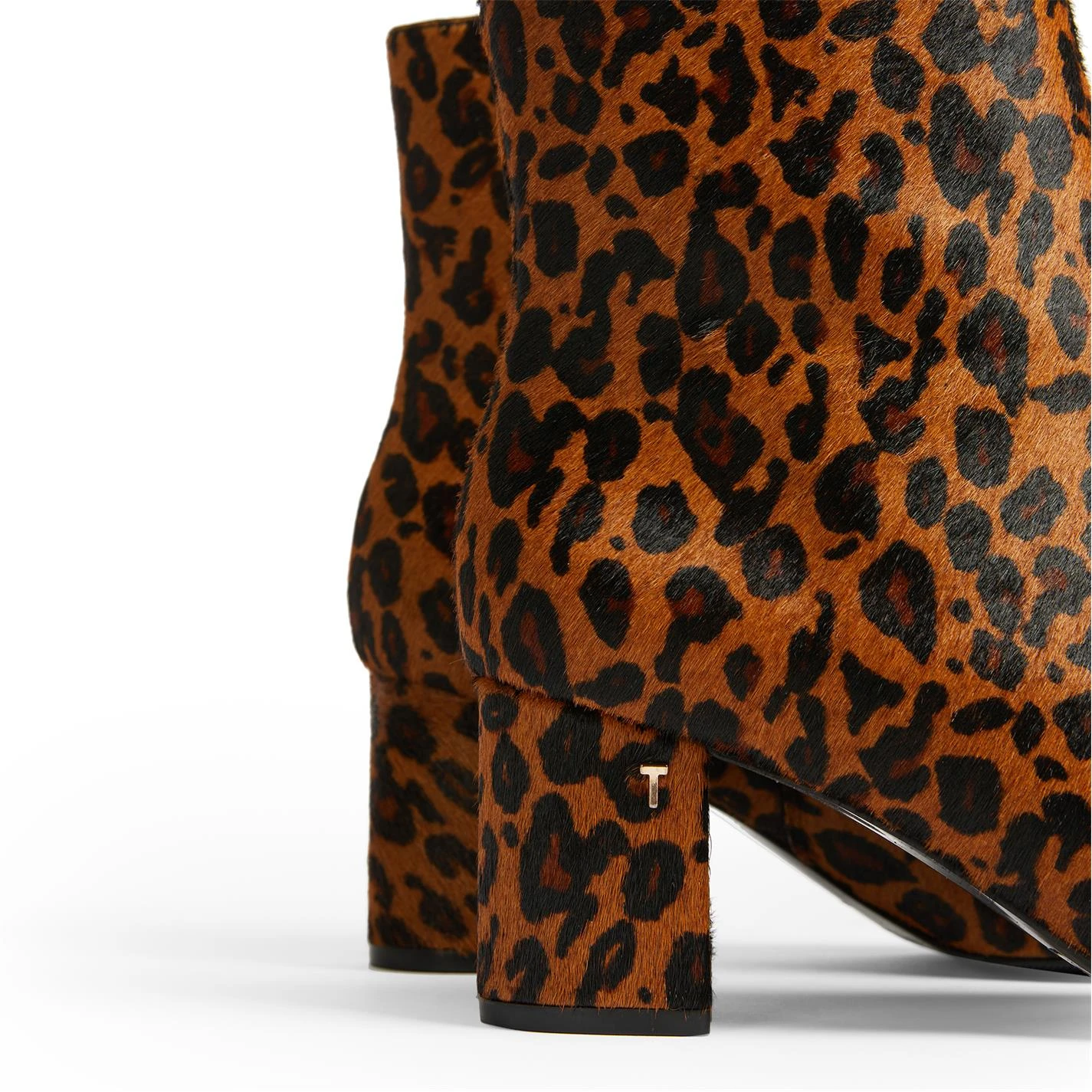 Enhance your footwear selection with the Ted Baker Niomey Ankle Boots. Crafted from a premium Bovine leather, these boots feature a side zip fastening with gold toned hardware. The small block heel offers a touch of elegance to your attire with the all-over animal print and Ted Baker branding completing the high quality look.