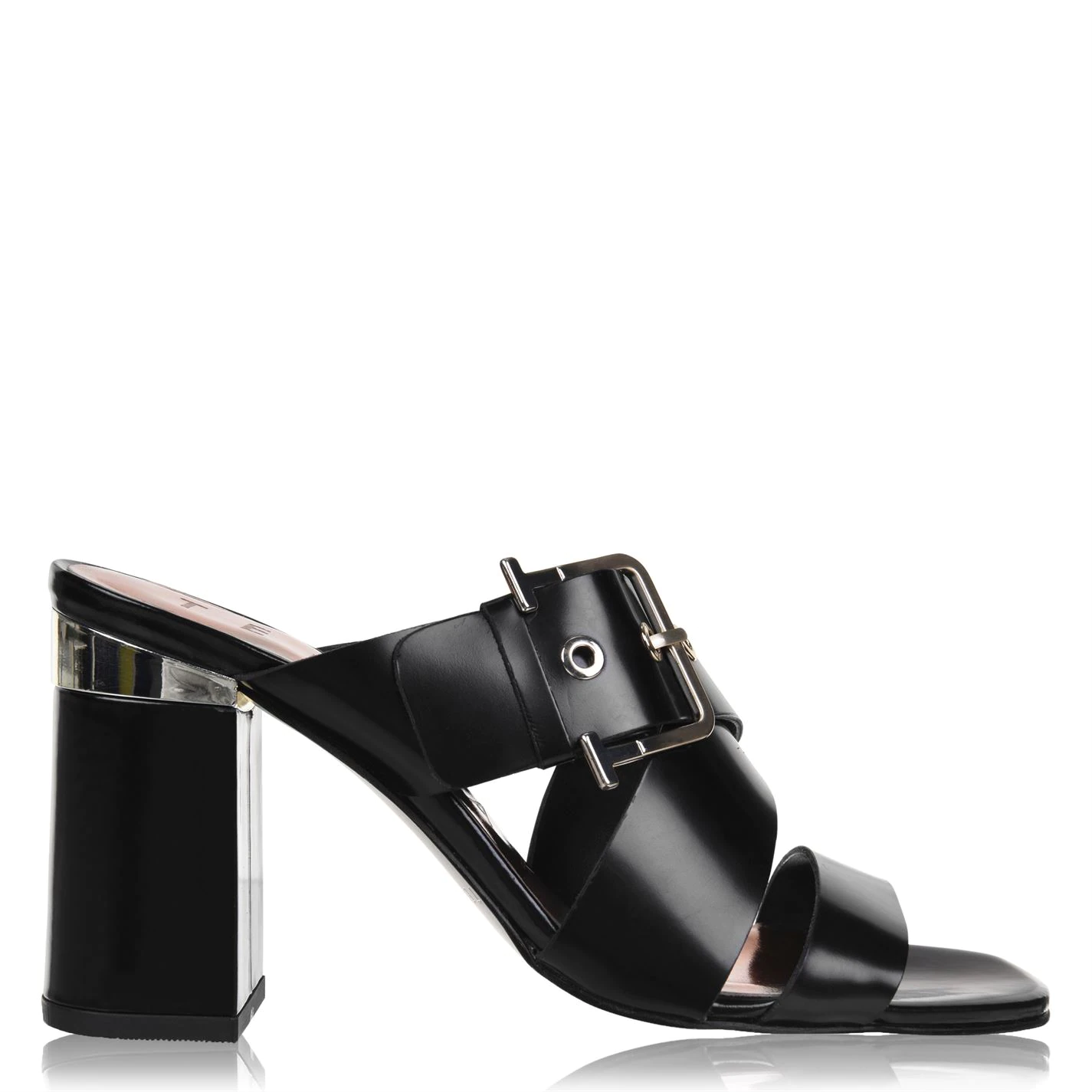 Set on a sturdy block heel to elevate you stature, these mules then come featuring leather straps to the upper that are fastened by a metallic buckle as well as having a leather foot-bed to the insole for comfort which is further adorned with the trademarked Ted Baker branding. The perfect brand profiling, do not miss.