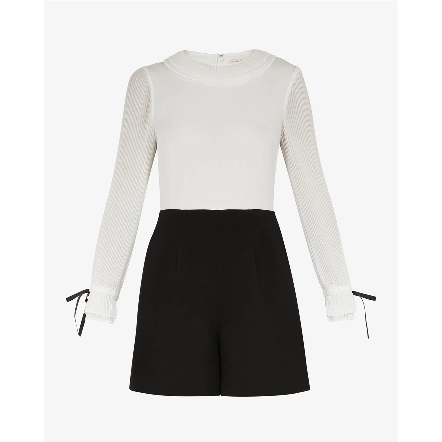 Slip into something super stylish with the Ted Baker Pleated Playsuit. The design features long sleeves with tie cuffs and a gathered waistline to help achieve a flattering fit. With the pleated sheer sleeves adding a touch of formality, the playsuit is complete with a rear zip fastening.
