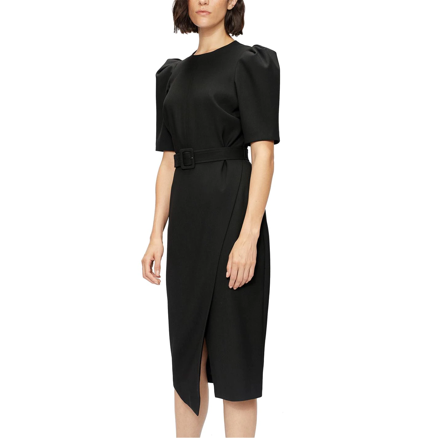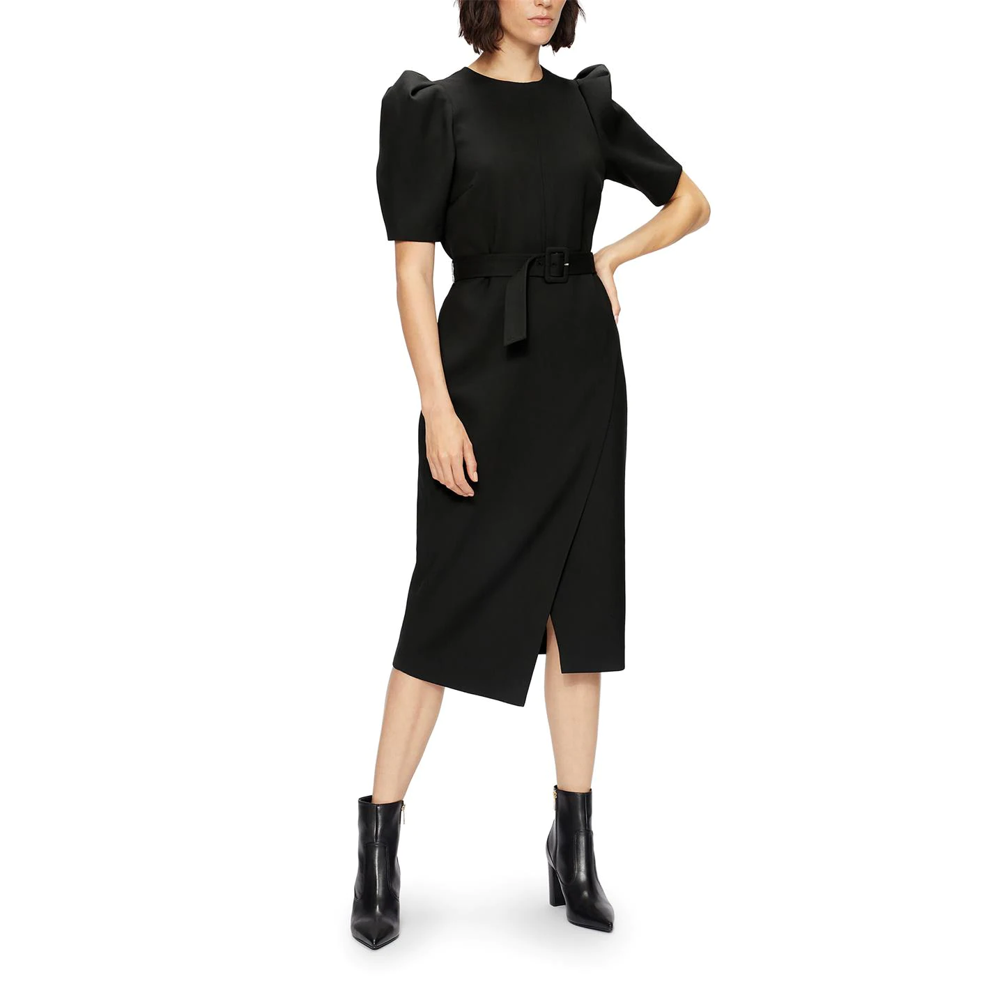 Add a statement piece to your office wear selection with the Ted Baker Popieyd Tailored Dress. Made with short puffed sleeves and a wrap detailing on the skirt, this dress will look stunning paired with ankle boots. The look is complete with a buckle belt around the waist to create a flattering shape.