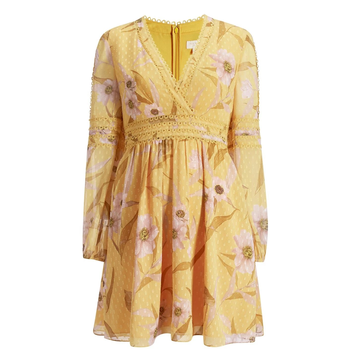 Invite a pop of colour into your wardrobe with the Ted Baker Posyy Mini Dress. Designed with a flattering v neckline and gathered waistline, the long balloon sleeves and embroidered trims offer a vintage touch. With the all-over print adding a stylish appeal, the dress is complete with a rear zip fastening.