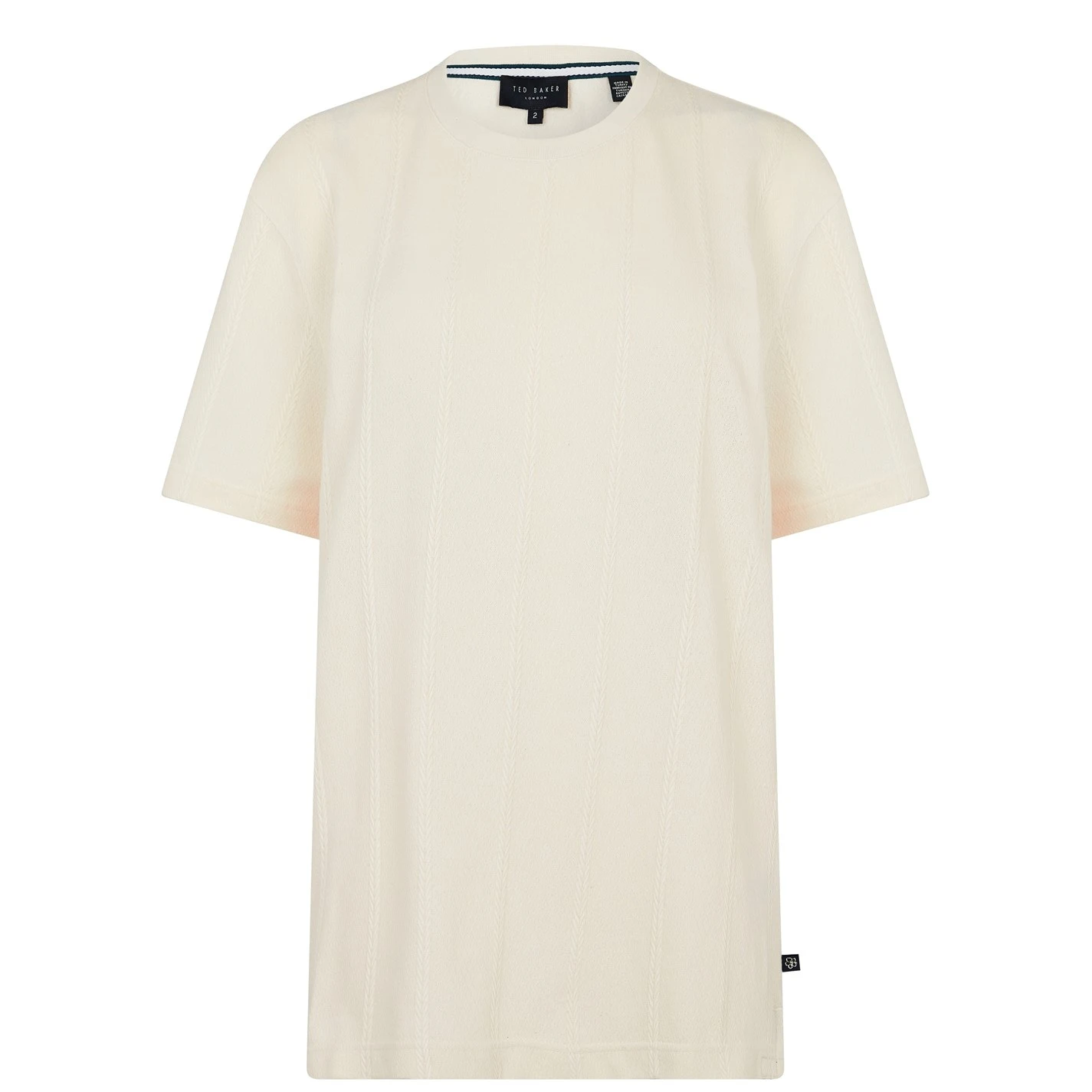 Refresh your weekend wardrobe with the T Shirt from Ted Baker. Constructed in a soft cotton material, this t shirt is cut in a regular fit and features a ribbed crew neckline, short sleeves, a split hemline along with a patterned design to the body and sleeves gives a simple but stylish look, completed with the Ted Baker branding for a high quality appeal.