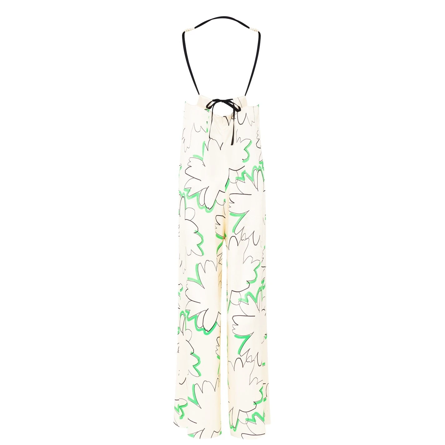 Refresh your collection with this jumpsuit from Ted Baker. Taken from their Made in Britain collection, this jumpsuit is cut with a plunging V neckline, this jumpsuit is characterised by self tie halter neck straps that lead to a low back. With wide fit legs to create a chic and sophisticated style, this jumpsuit is finished in an abstract floral print.