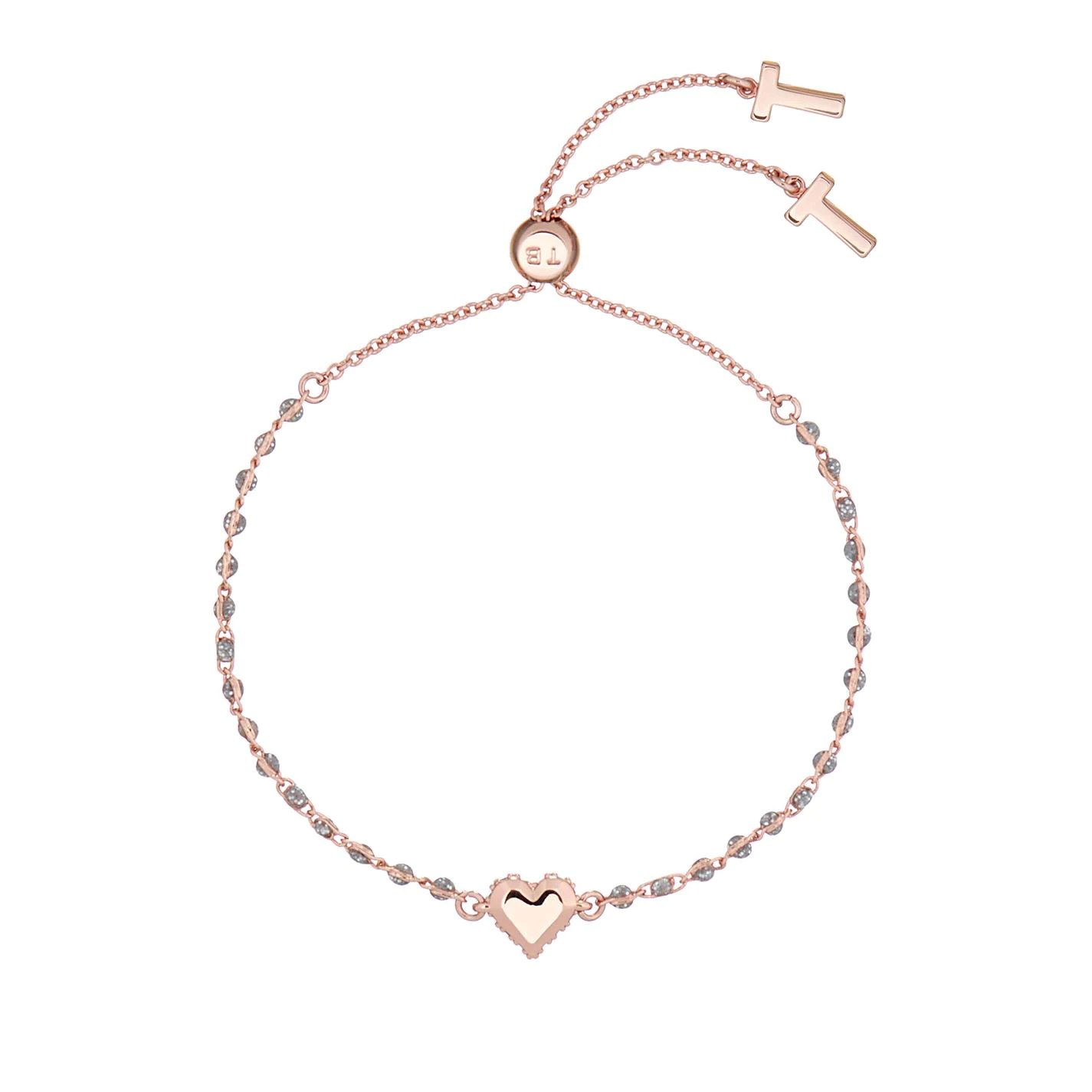 Shine bright with Ted’s SARSA bracelet. The delicate heart motif has sparkling crystals on the edging and sits on a delicate rose gold chain that features alternating sparkling resin detailing.