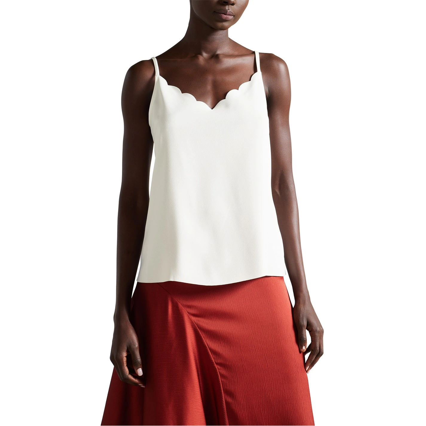Enhance your collection with this Ted Baker Siina Cami Top. Constructed in a sleeveless style with adjustable shoulder straps and a crew neckline with a scalloped edge for a classic look, it features elasticated hems for a comfortable fit. This top is a solid colouring throughout and is complete with Ted Baker branding for a high quality appeal.