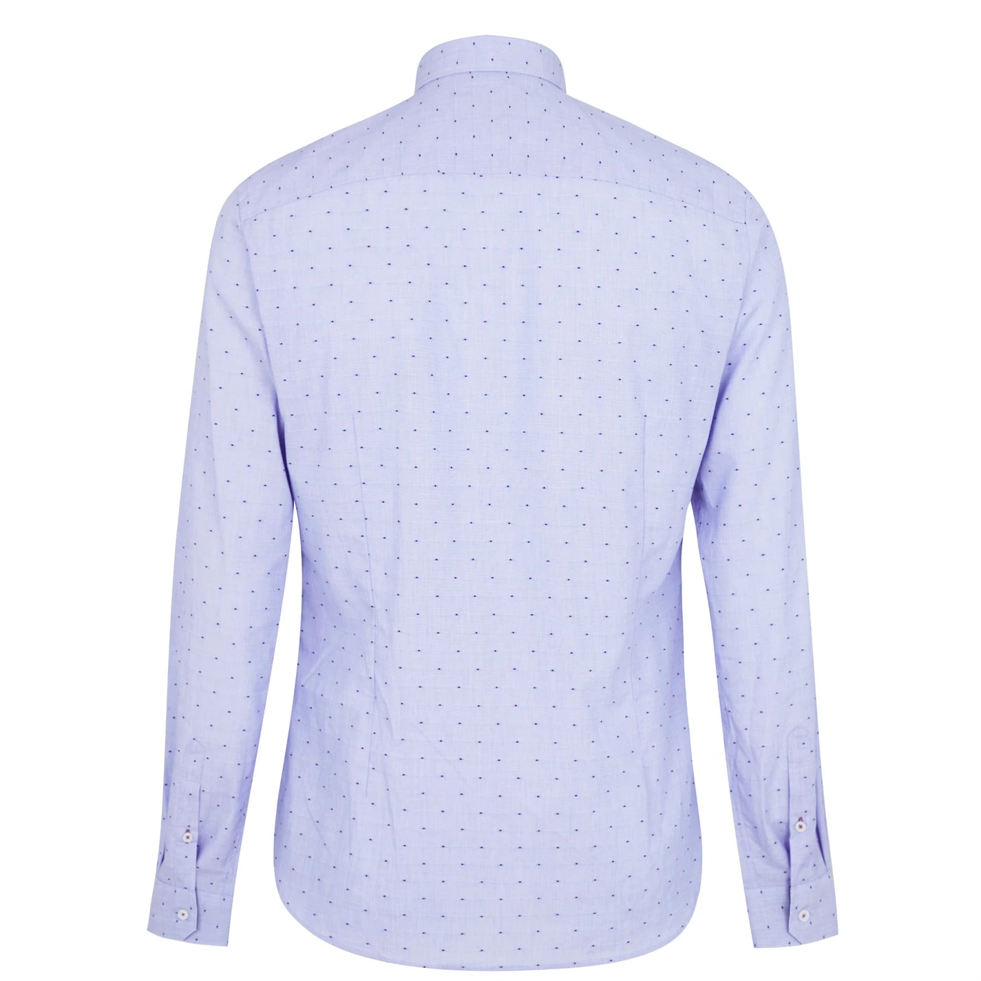 Perfect for weddings or any formal occasion, this slim fit silhouette has been crafted from a soft cotton fabrication styled with a blue colourway adorned with contrasting dots repeated throughout for a luxe appeal. Complete with a point collar, full button placket and button cuffs to the long sleeves, this shirt is perfect to layer under a blazer and pair with jeans for a toned down look.