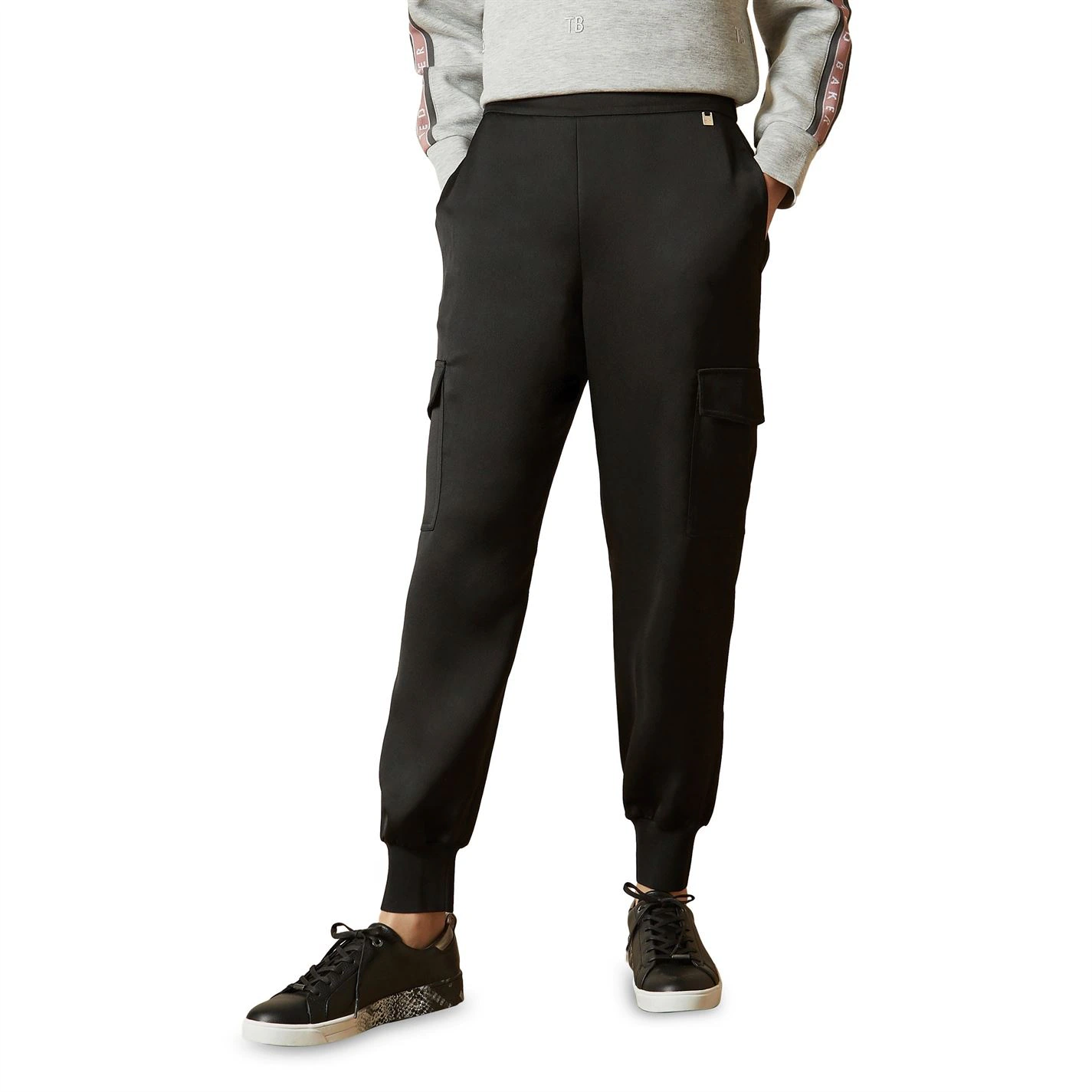 Enhance your collection with these Ted Baker Sulia Jogging Pants. Constructed with an elasticated waistband and drawstring fastening for a secure fit, it features ribbed trims for comfort and five pockets for storage. These joggers are designed with a signature logo and is complete with Ted Baker branding.