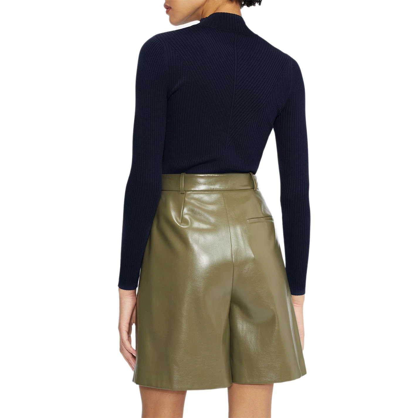 The Taralyn Sweater from Ted Baker with high neckline and ribbed body that contours your shape. The long sleeve design is elegantly feminine pair with mini skirt and knee high boots for an autumnal look.