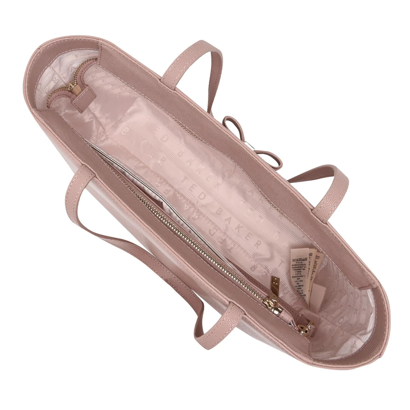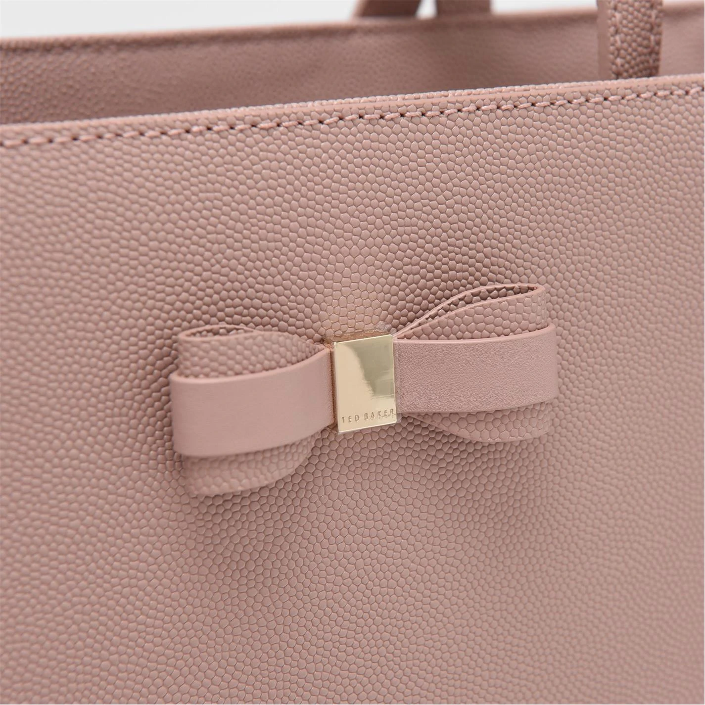 Welcome a classic bag into your accessory selection, offering you both style and a practical essential for day to day use. Finished with a grained Leather exterior and block colour throughout, the bag features a double tote strap finish, featuring a zip closure and main spacious compartment. The bag is accessorised with the iconic Bow the brand is known for and simple Ted Baker branding. H 23.5cm x W 37cm x D 10.5cm.