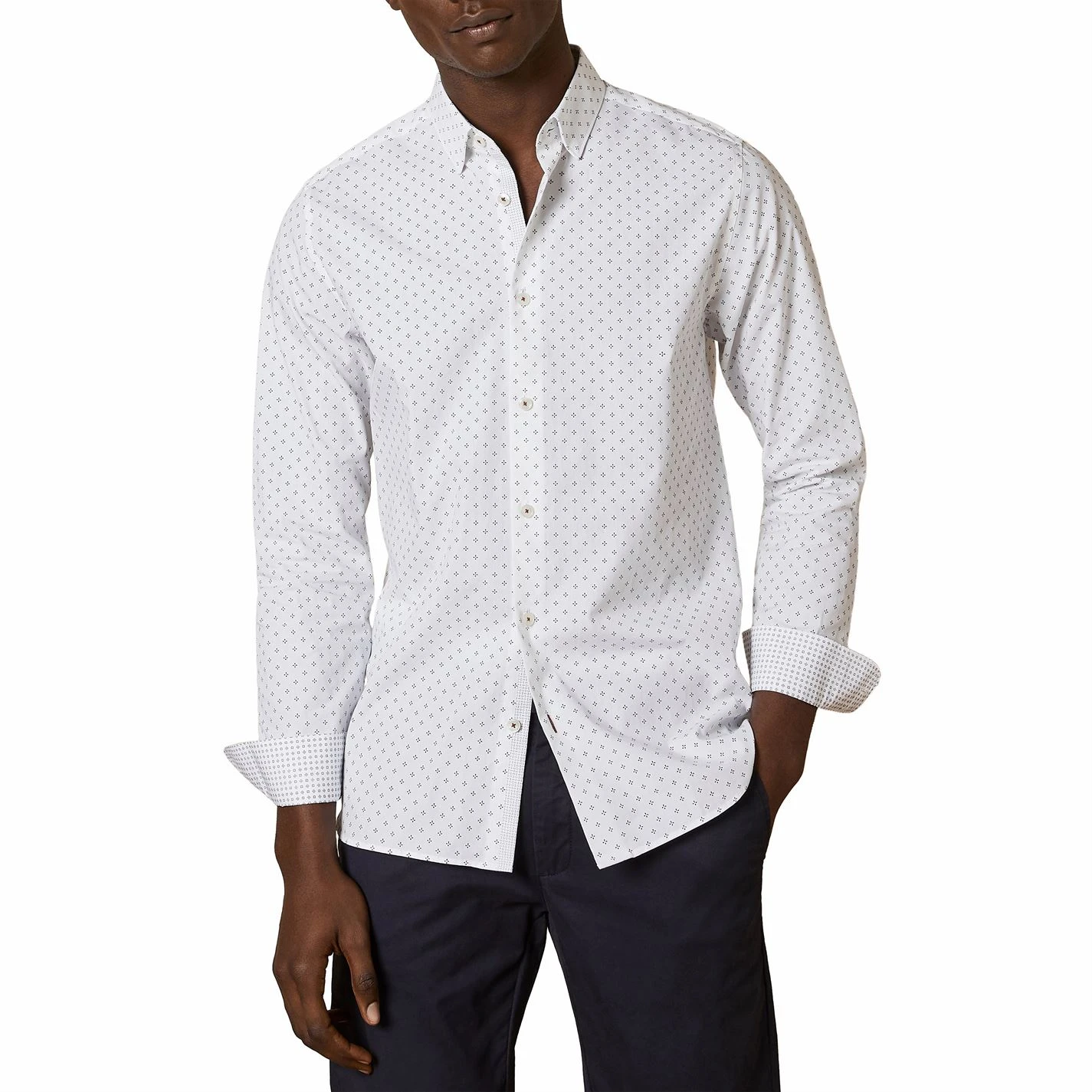 This Shirt from Ted Baker would be a welcome addition to any wardrobe. Crafted in a soft composition, this shirt boasts a fold down collar, a central button closure, long sleeves, and a straight hemline. The look is finished with the brand’s signature logo embroidered to the chest for brand recognition.