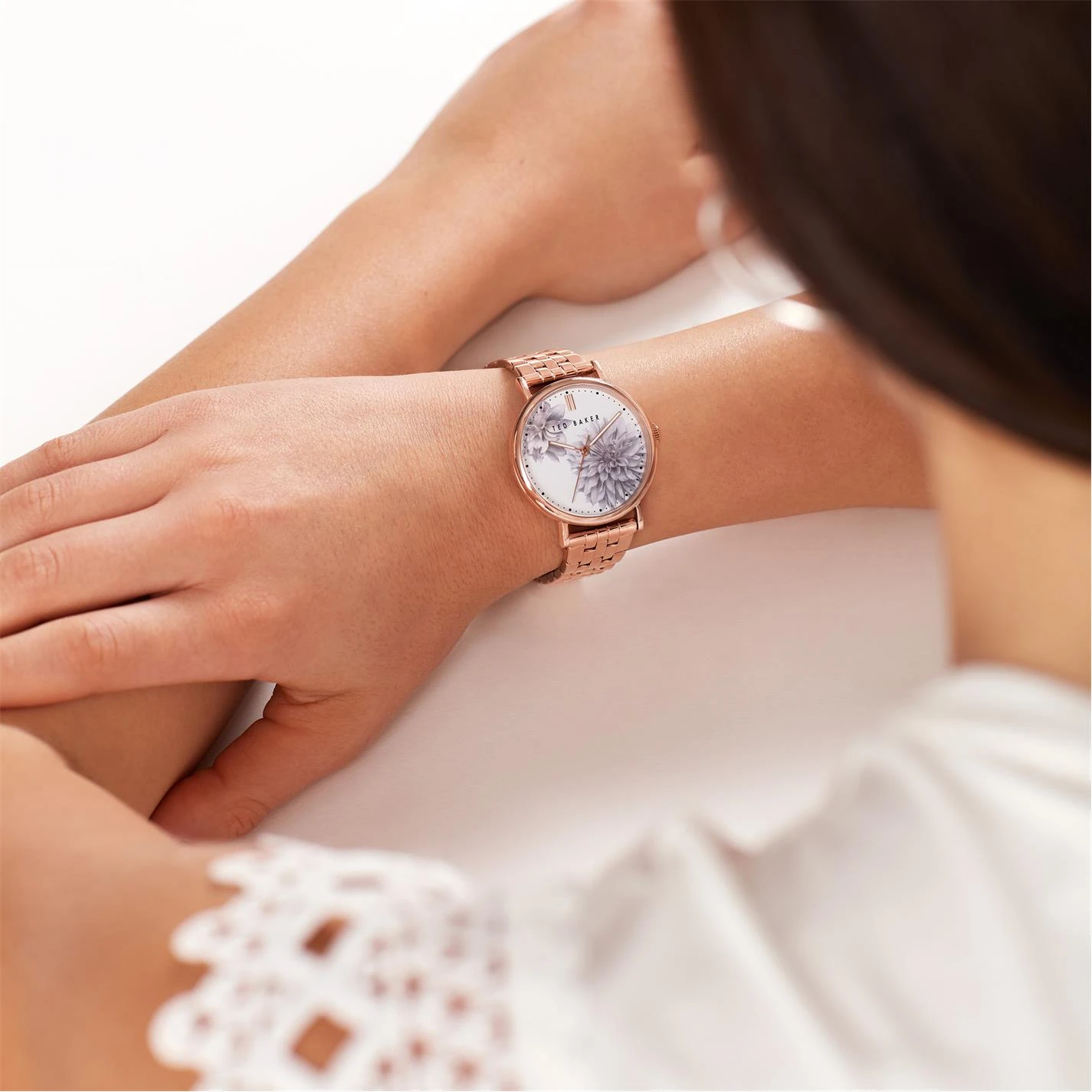 Live in full Bloom with Ted’s Phylipa Peonia! The delicate floral printing on the dial matches perfectly with the stainless steel mesh band, for a watch that will complete your everyday look in the most romantic way.