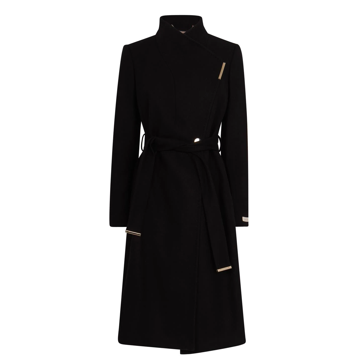 Ensure your wardrobe is prepared and invest in your coat collection with Rose from Ted Baker, keeping you looking sleek and stylish on the colder days and wintery months. Made from a high quality wool, the coat has been cut in a signature wrap style, and completed with elevated details such as the high neck collar and metallic tipping on the belt. Pull yourself in and create a flattering look with this simple yet statement layer.
