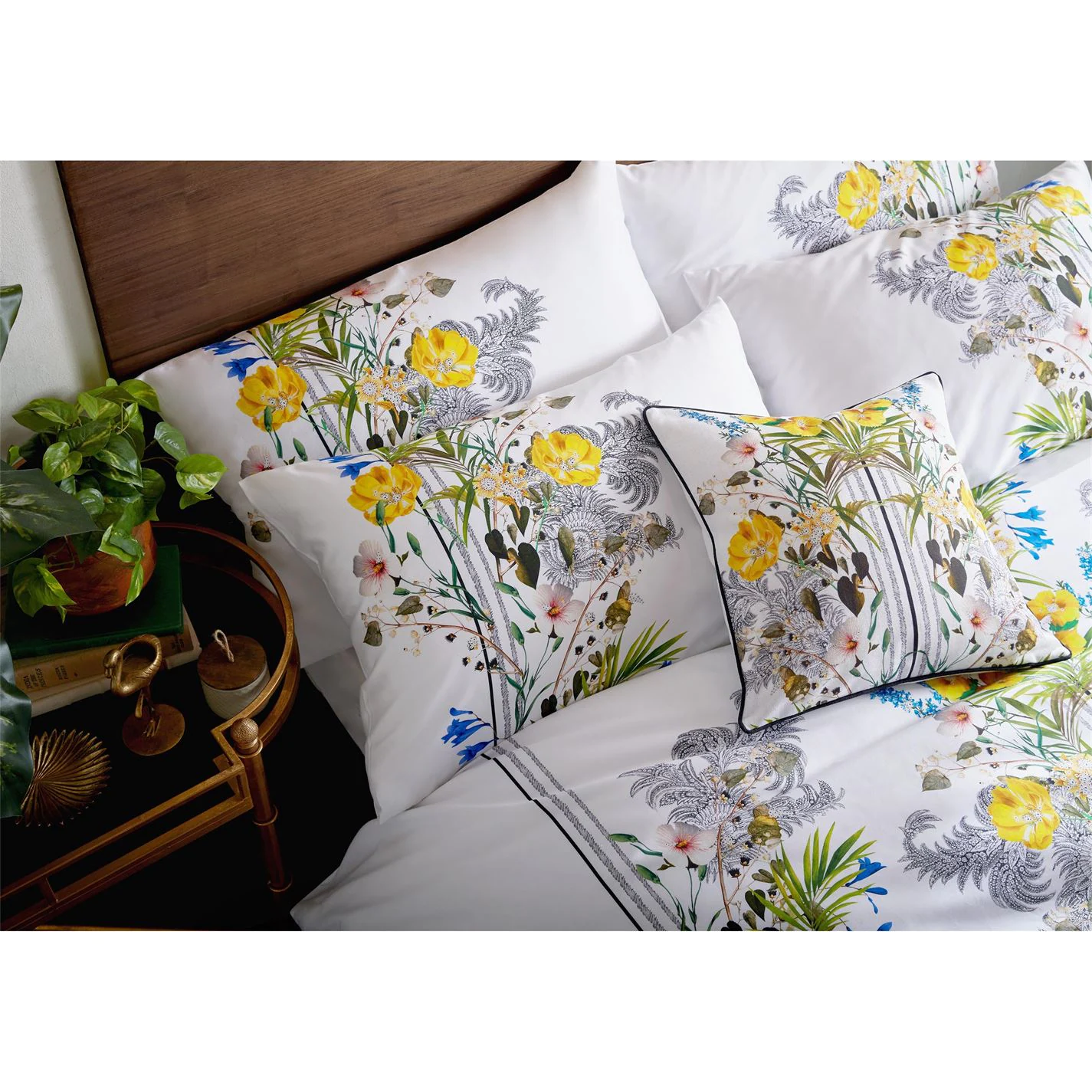 For sumptuously sweet dreams, Ted’s Royal Palm bedlinen will bring sophisticated glamour to your bedroom. Beautiful scrolls mix with vibrant yellow florals and bright blue blooms to create an exotic twist.