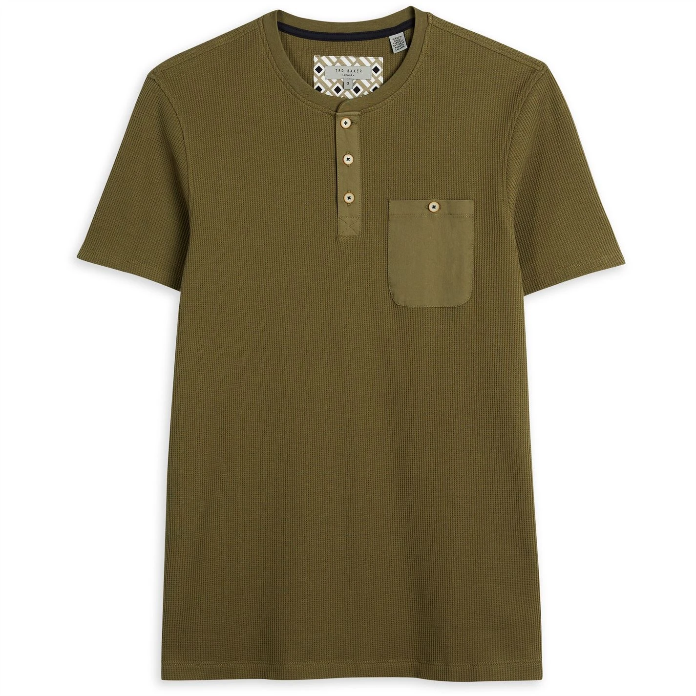 Elevate your collection with this Ted Baker Tekilla T Shirt. Crafted with short sleeves and a grandad neckline with three buttons for a classic look, it features a chest pocket for added style. This t shirt is a solid colouring throughout and is complete with Ted Baker branding.