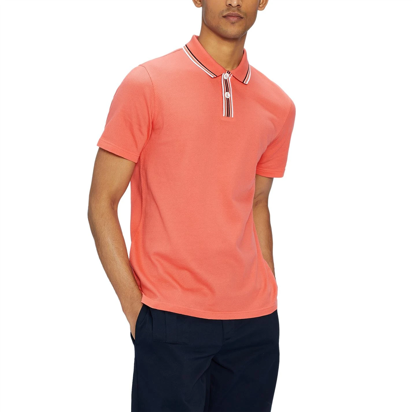 Add to your smart-casual collection with this regular fit Ted Baker Polo made from a soft pure Cotton fabrication. Designed in a solid colour-block, this straight cut silhouette details short sleeves, classic flat knit point collar and a two button placket adorning a contrasting stripe detailing to the placket and collar for a statement style. Pair with jeans and sneakers for a casual look or smart trousers for a smart-casual attire.