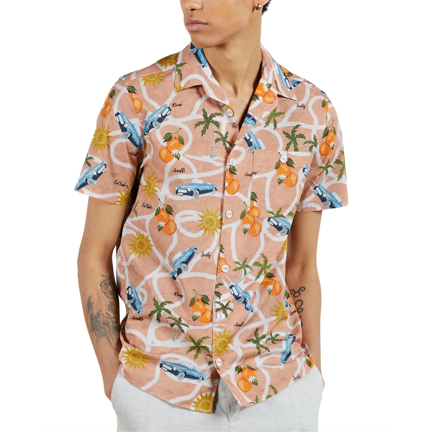 Enhance your collection with this Ted Baker Udon Short Sleeve Shirt. Constructed with short sleeves and a chest pocket for a classic look, it features a folded collar and full button fastening for a secure fit. This shirt is an all over print design with a signature logo and is complete with Ted Baker branding.