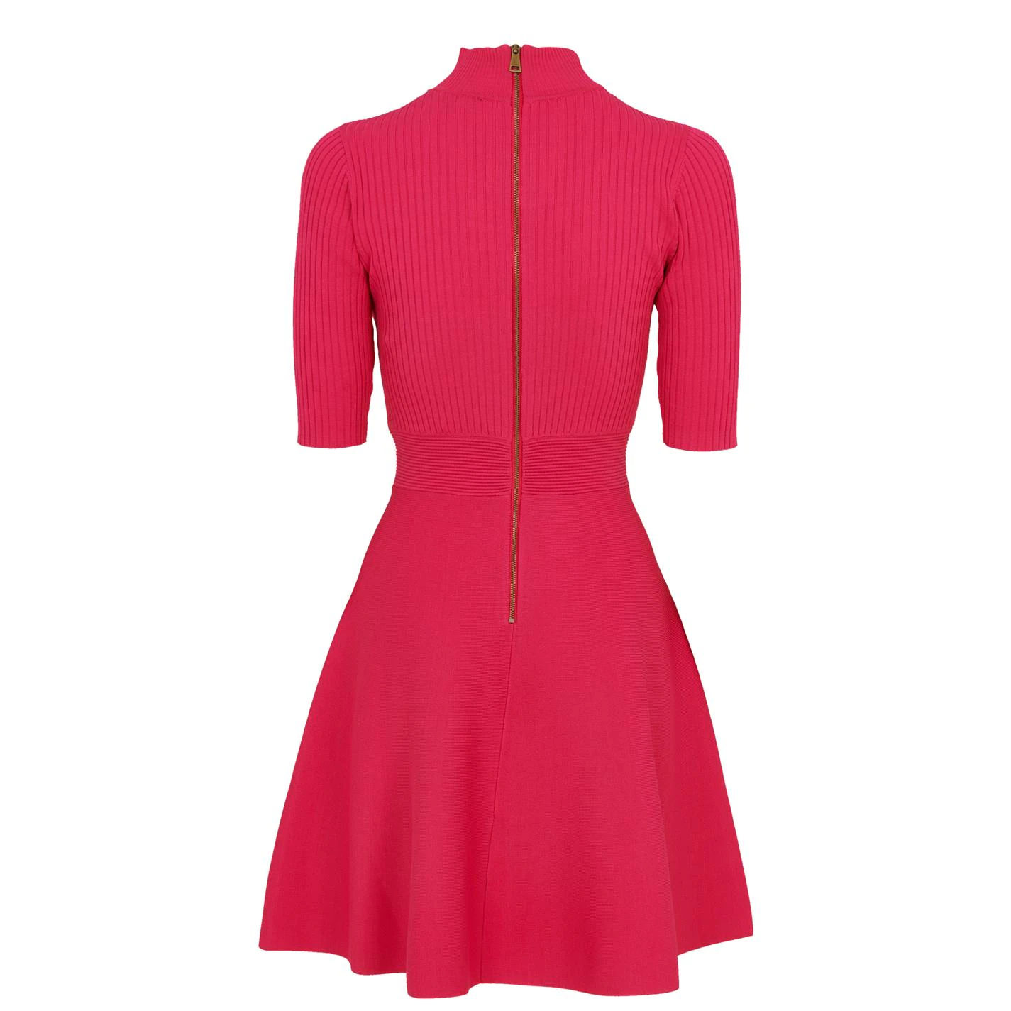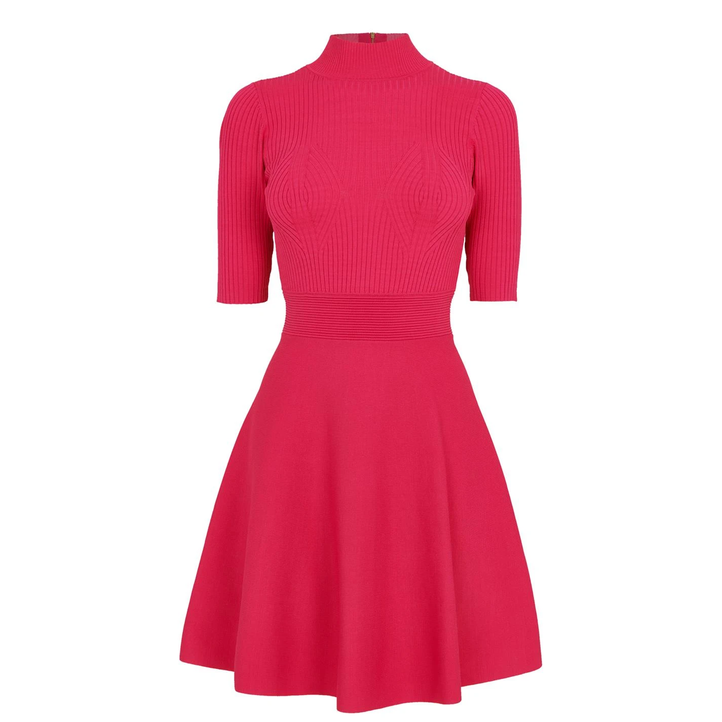 Taking knitwear to the next level the this Viviyy Mini Dress features ribbed detailing, turtle neck, A-line skirt and tonal stitching throughout. With three quarter sleeves and a flattering waist band. Perfect for parties. Match with block colour heels and a clutch for the perfect evening ensemble.