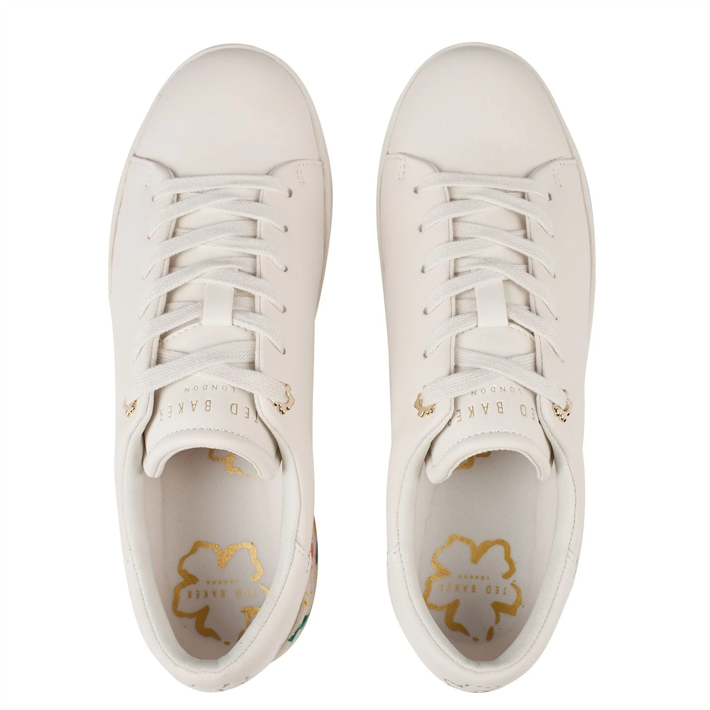 Elevate your everyday staple footwear collection with the Timaya Low Top Trainers brought to you by Ted Baker. Crafted from a soft leather fabrication to the upper, this low top silhouette styles a minimalistic aesthetic characterised with a graphic floral print to the side of the synthetic sole for a fun and playful look. Finished with a full lace fastening and rounded toe, this pair is branded with Ted Baker logo embellished to the tongue and heel counter.